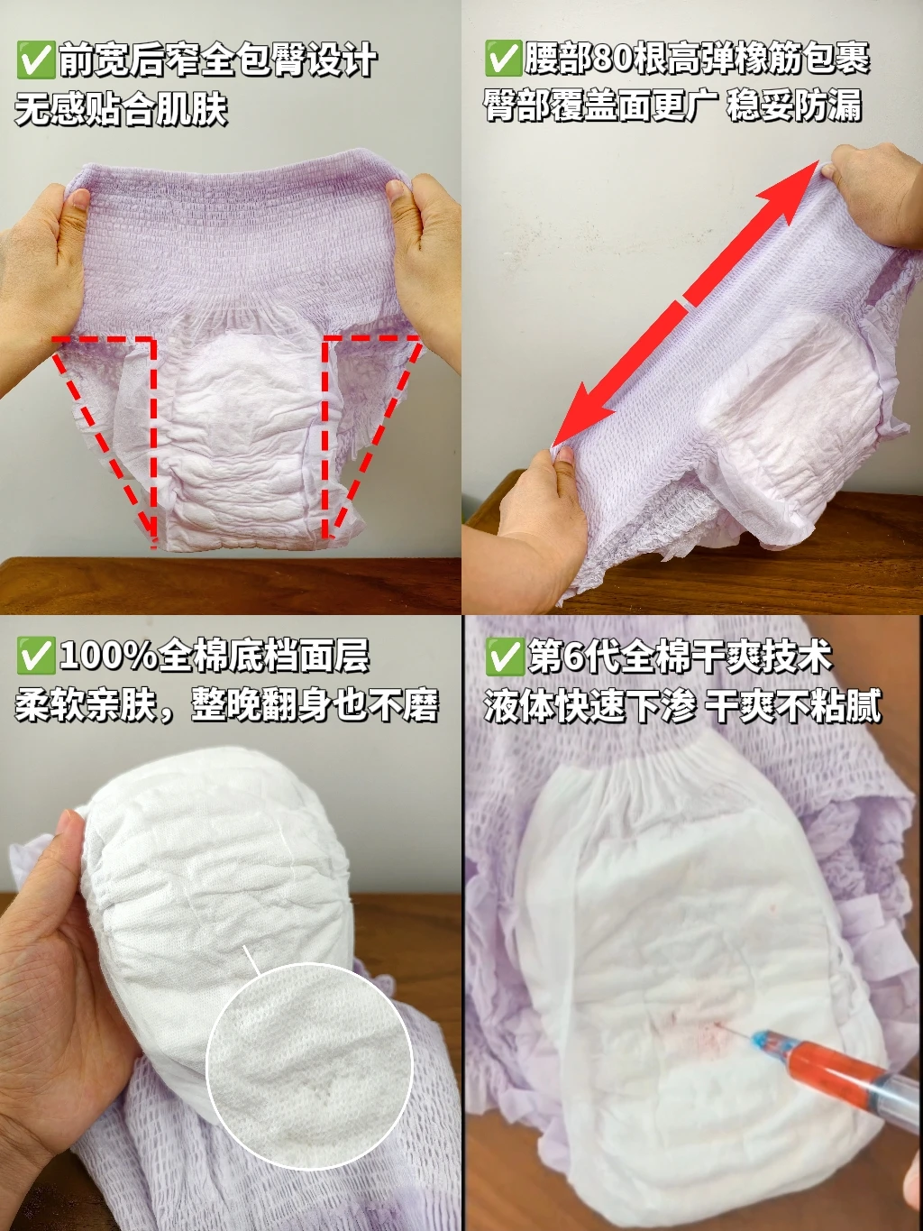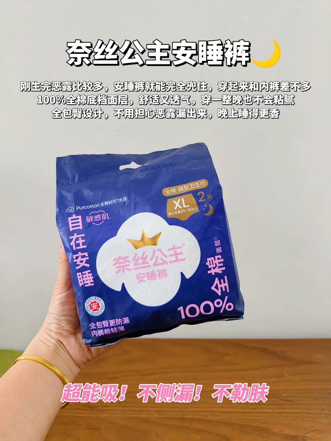 👩🏻刚生完恶露量比较大,这时候建议穿奈丝公主安睡裤,和内裤一样的版型,轻薄又贴肤。腰部添加了80多根橡筋,弹力很好,剖腹产的妈妈也不用担心被勒到伤口,100%全棉底裆面层,舒适又透气,穿一整晚🌙🌙🌙也不黏腻。全包臀的设计+480mm的超长吸收底裆,不用担心恶露漏出来,晚上也能睡的更好,有利于身体恢复