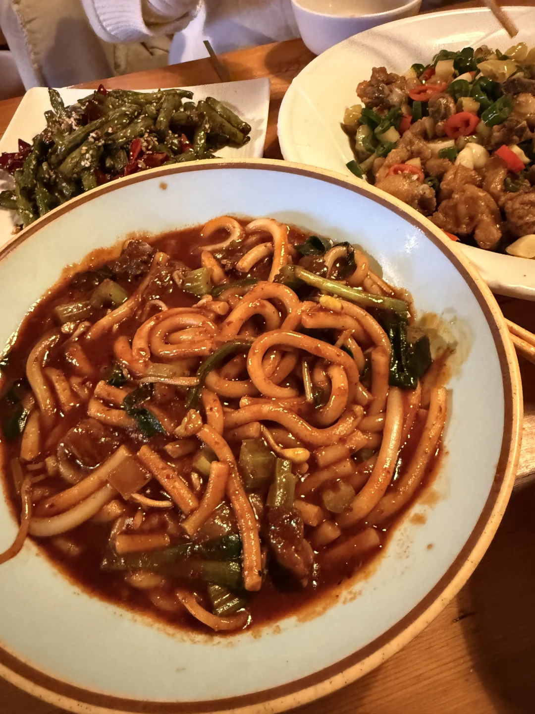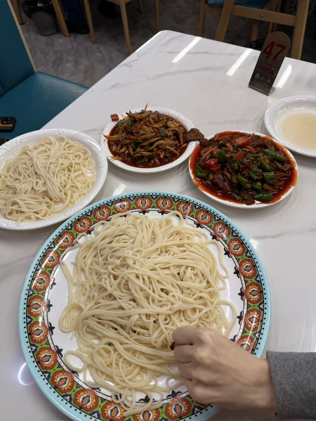 新疆炒米粉吃了 大盘鸡吃了 冷水鱼吃了 土火锅吃了 手工拌面吃了 粉面店吃了 满足😌