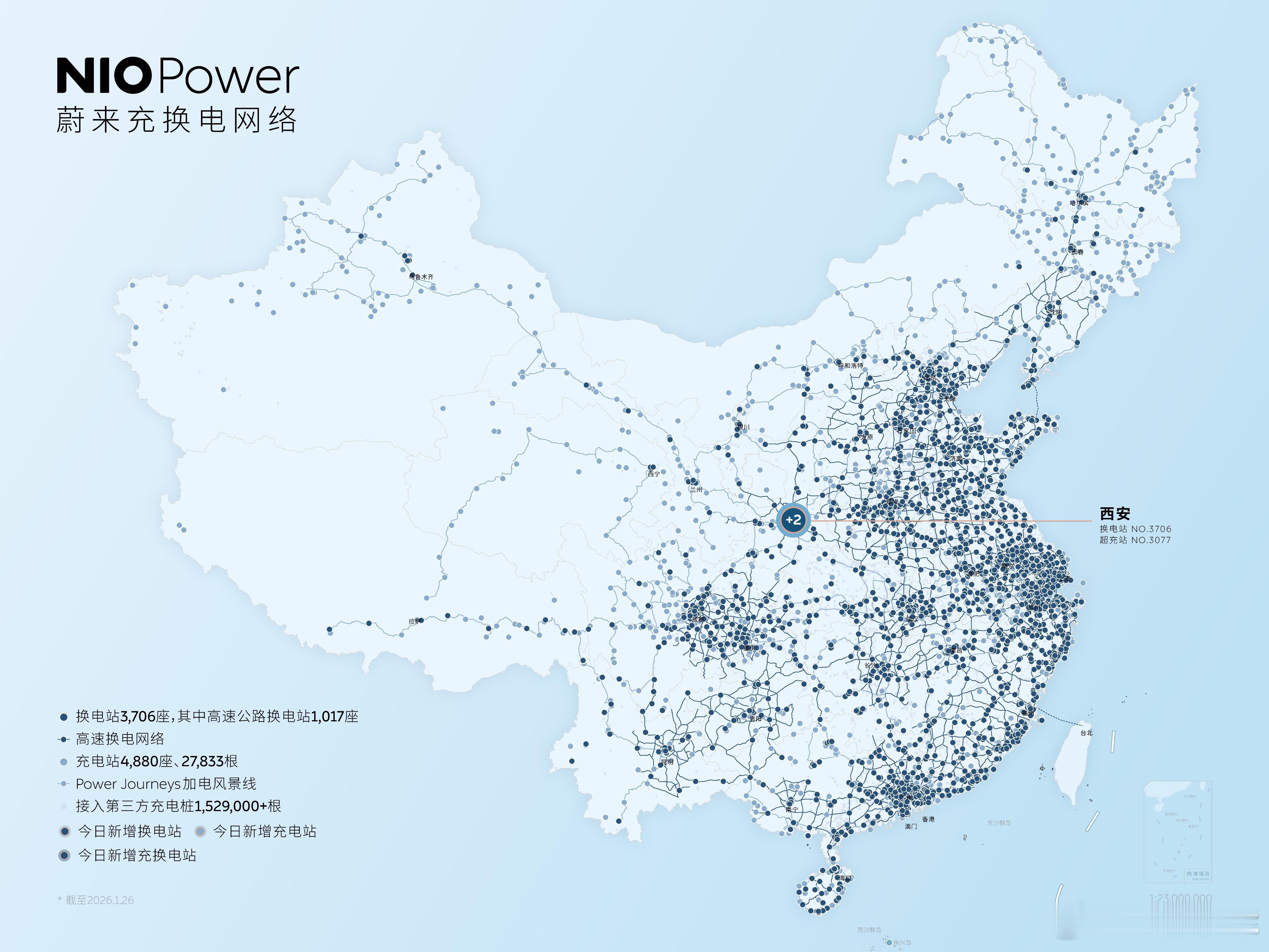 1月26日 NIO Power 2站上线NO.3706 蔚来换电站 | 西安莲湖白家口NO.3077 蔚来超充站 | 西安莲湖白家口持续布局-让加电比加油更方便