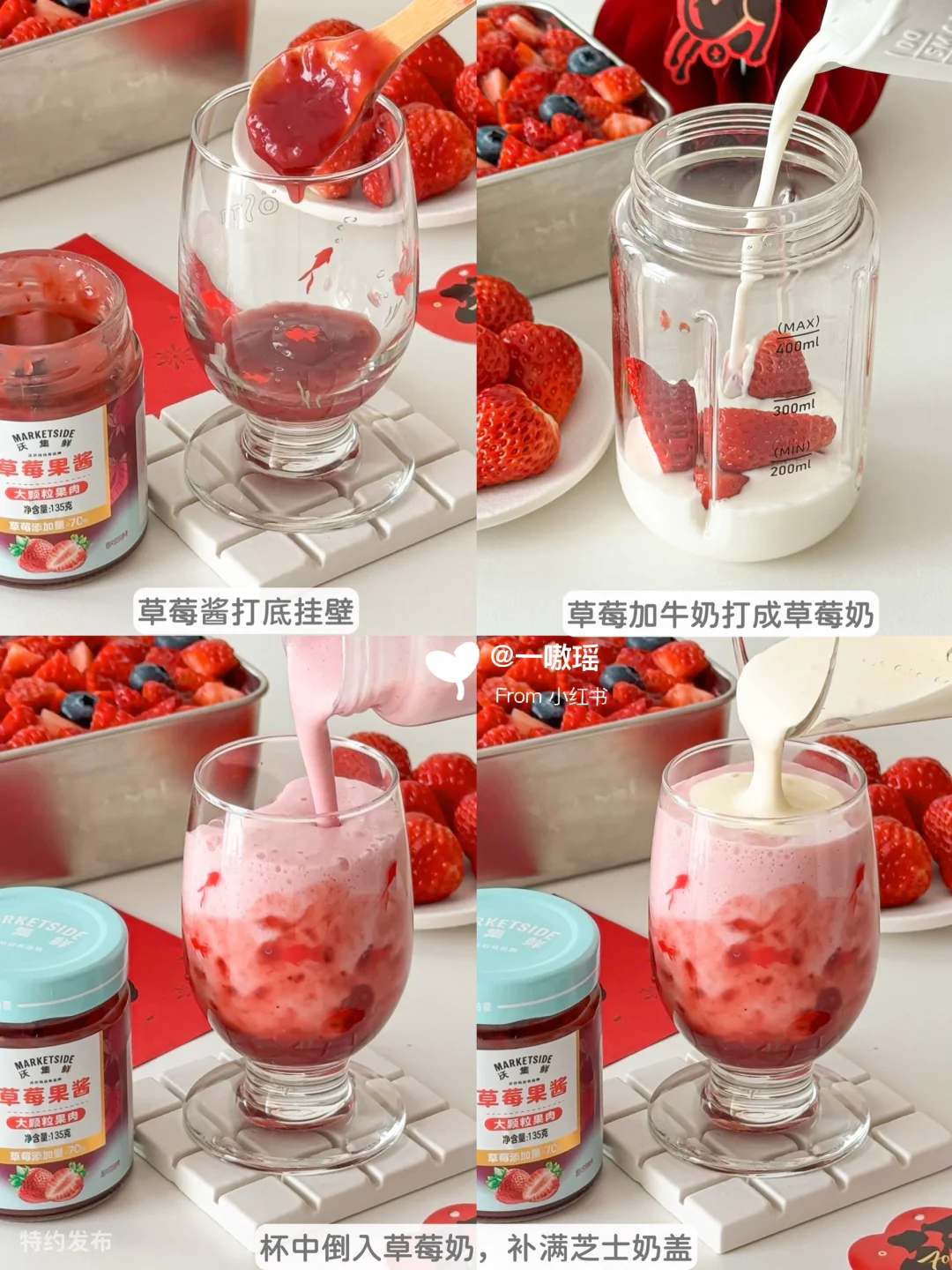 🍓图省事直接用了沃集鲜草莓果酱,开盖就能闻到浓郁的草莓果香✨