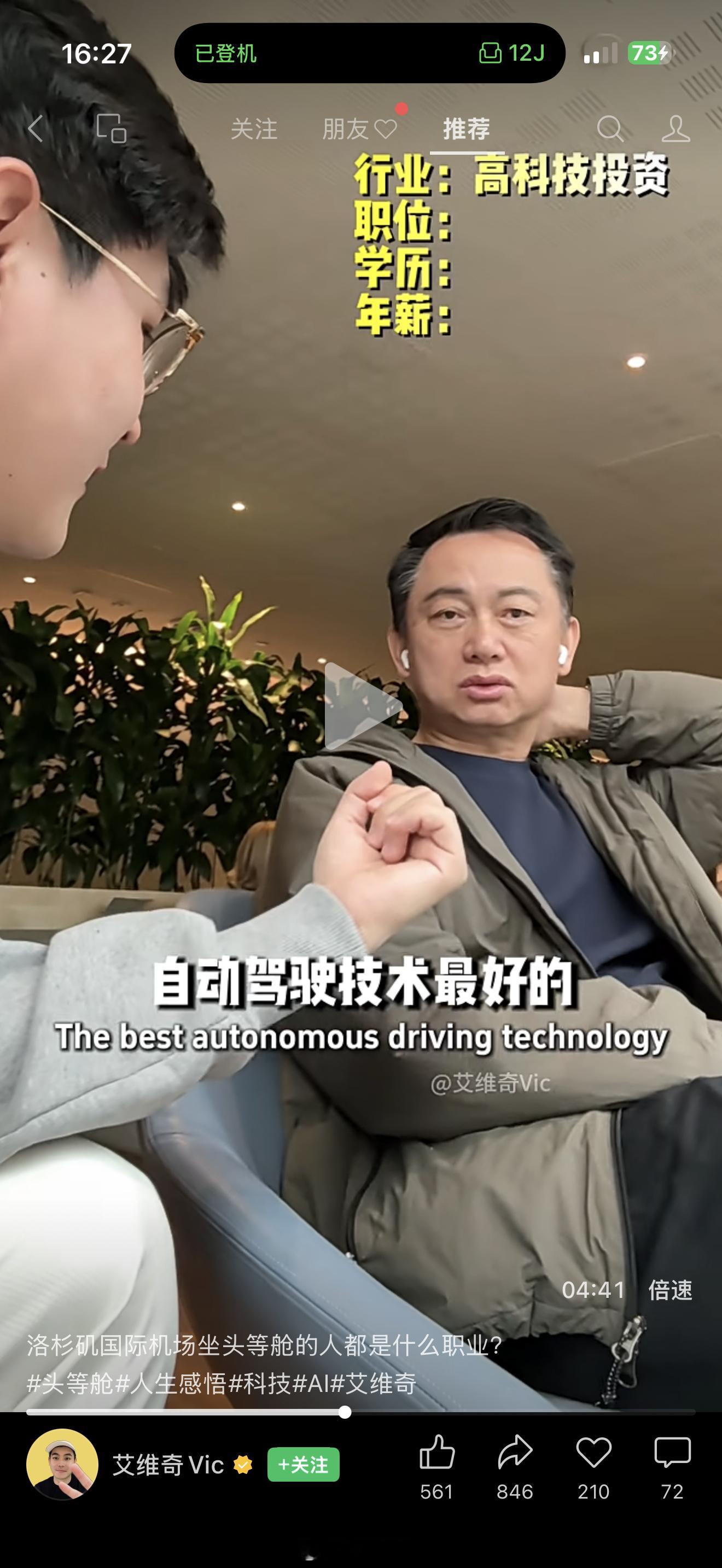 看了艾维奇在美国机场采访的一个投资行业大哥,聊到后面开始聊车了。大哥说准备买个电车体验一下,首选是特斯拉,国产电车是第二选择,体验过问界也感觉非常不错。他给出的理由是特斯拉的自动驾驶最好。特斯拉的FSD确实很强,而且是全面的强,但是我实话说,在国内的全场景里,这真的是一种误解。而且大哥还是比较客观的,他认为汽车的大屏、娱乐、按摩等娱乐舱也是一个发展方向,只是个人想开车更轻松。——那不更是问界吗?兄弟们,我们对于国产电车的传播,还是任重道远。