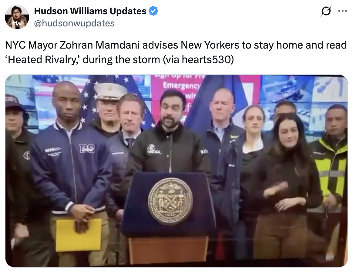 心系民生暴风雪袭美,新任纽约市长Zohran Mamdani透露,纽约市公共图书馆将在暴风雪期间为持卡读者提供《巅峰对决》的免费电子书借阅服务,希望大家待在家好好看书