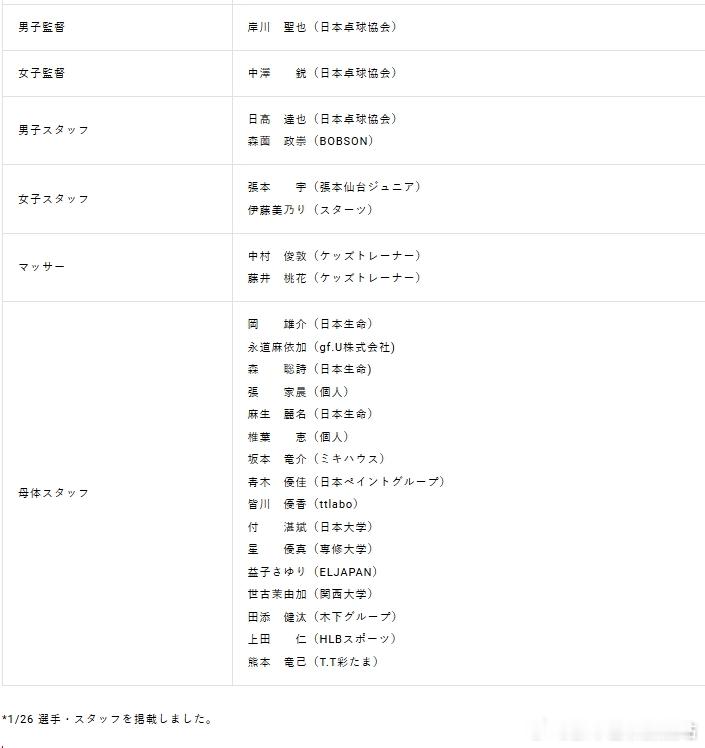 wtt新加坡大满贯2026张本智和 Jtta公布新满参赛选手和随行工作人员名单。