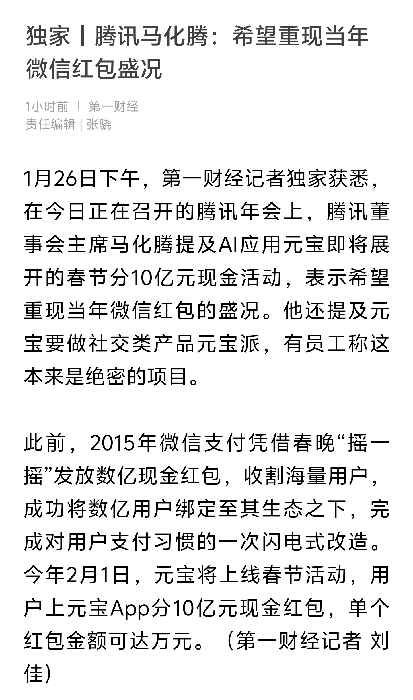 马化腾还说腾讯唯一花钱投入比较多的就是AI,所以以前做游戏真就没怎么花钱啊马化腾希望重现当年微信红包盛况