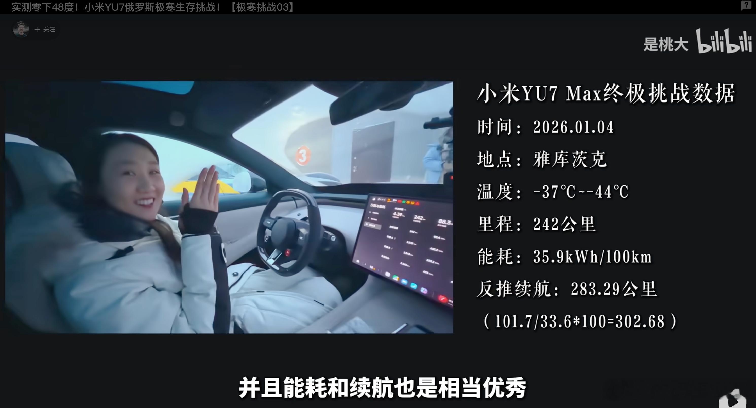 YU7在极寒环境下表现卓越,彰显硬核实力,在-40℃的白骨之路,轻松就突破纯电车低温极限,在勒拿河冰面、雪雾低能见度等恶劣条件下一切正常,续航280公里且工况正常,这是非常难得的。在哈尔滨零下22度真实通勤一周,续航还能剩40%,能耗控制水平处于第一梯队,长途高速、极寒满载等多种测试中,能耗表现稳定,三电水平较去年有显著提升,阿尔山冰雪路面,四驱分配快、抓地力强,动力响应干脆,操稳表现优等,保障驾驶乐趣与安全。而热管理出色得益于硬核科技,双模热泵回收热量,白盒交付实现系统级工程思维,AI算法精准控制空调,双风门电机保障新风量与节能,精准加热让电池以最佳状态快充,YU7以实力证明,国产电车在极寒环境下也能出色运行。