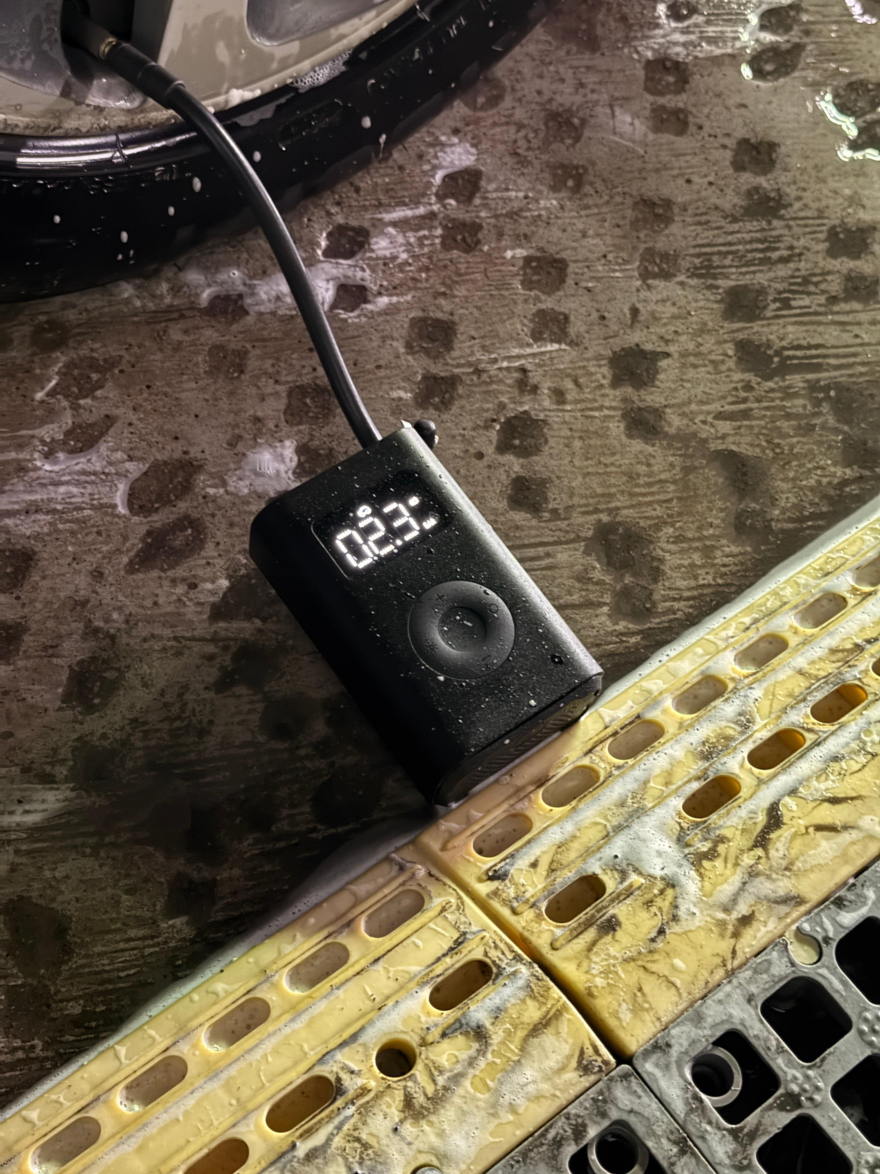 好久没开这老咕噜棒子了冬天天冷胎压掉了不少用小米的充气宝补一点四个轮胎从1.9bar补到2.5还有一格电