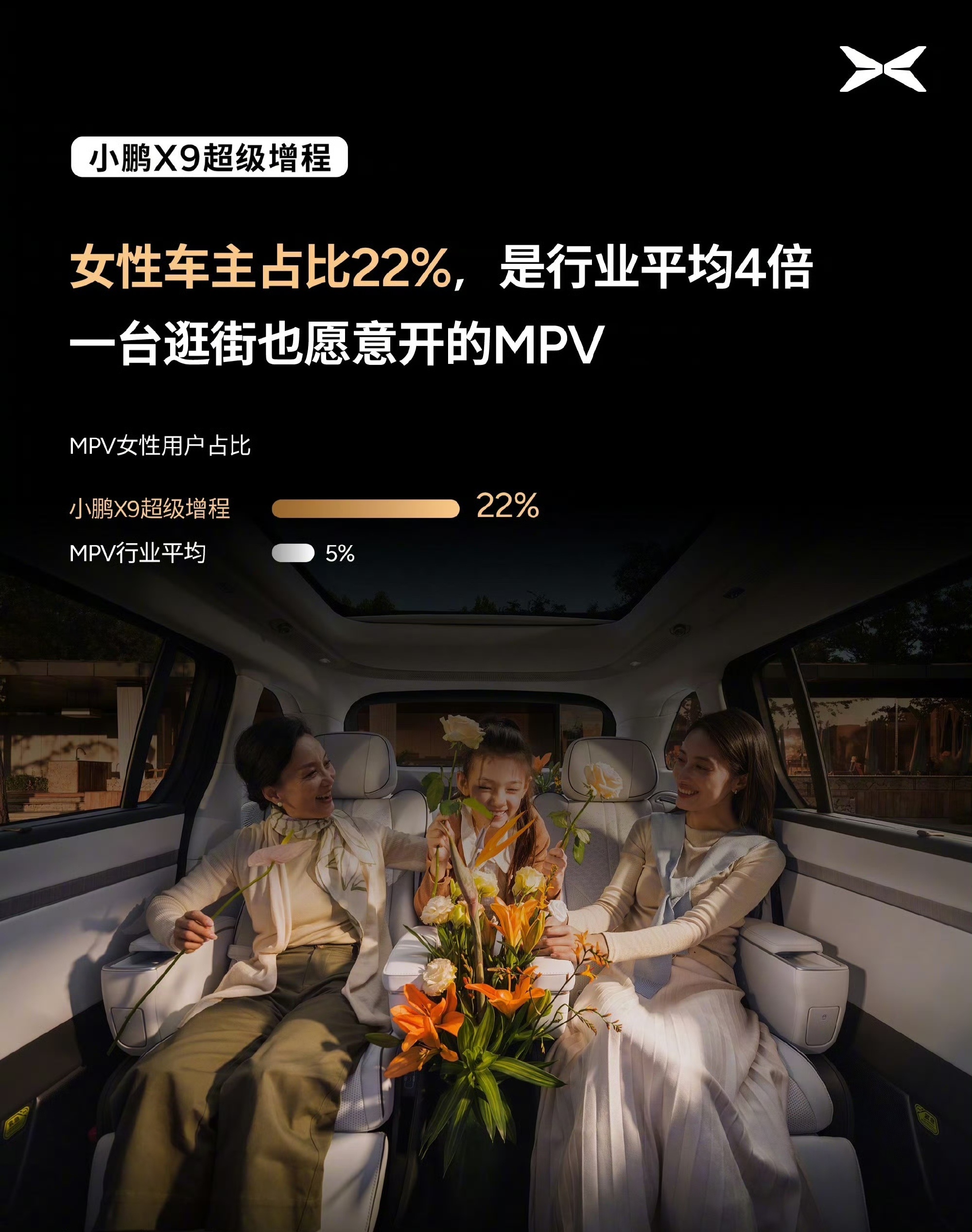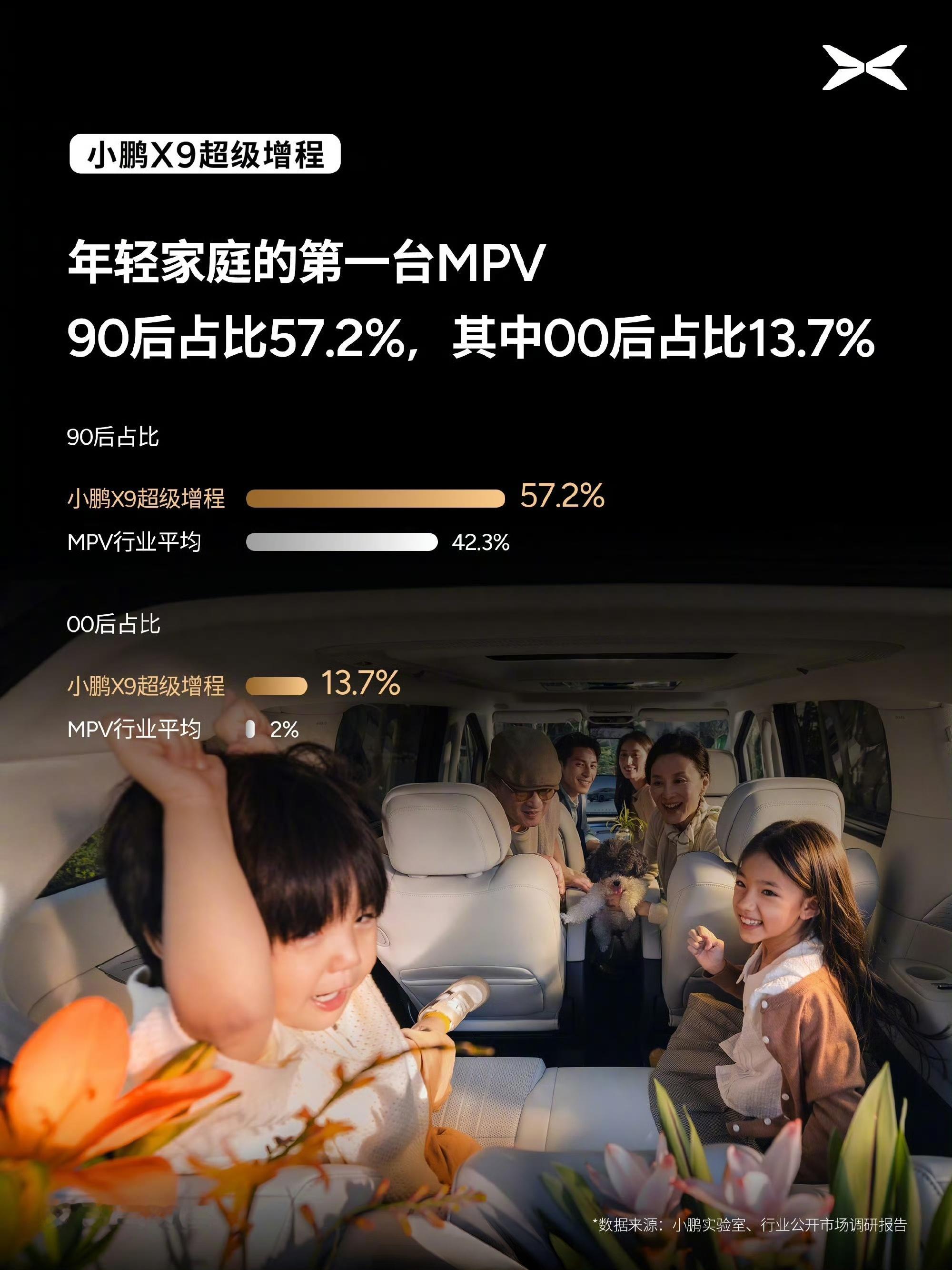 最近想做个MPV市场的解读,搜到小鹏X9 超级增程的销量数据,12月竟然交付了5424台,而且首购比例21%,试驾转化率50%,90后占比57.2%,00后占比13.7%,女性群体有22%,北方销量增幅还超过300%。其实在前一段开小鹏X9超级增程这台车的时候,我就觉得挺好,首先星舰2.0外观,不论是我这种年轻群体还是有娃家庭的中年人,开起来都不像一个司机,而且大电池大油箱去哪都没有里程焦虑,再有后轮转向、三排折叠这些配置在城区也非常实用。这是不是说明,以后年轻家庭买车的最终选择都是一辆 MPV小鹏X9超级增程首个用户画像报告发布