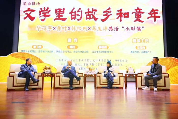 1月24日下午,“定山讲坛”第二十五期活动在南京江北图书馆一层定山剧场举行。茅盾文学奖得主毕飞宇、乔叶,江苏省作协创研室主任韩松刚与青年作家马玉炜以“文学里的故乡和童年”为主题,为现场200余名读者及超五万名线上观众带来了一场兼具思想深度与人文温度的文学盛宴。