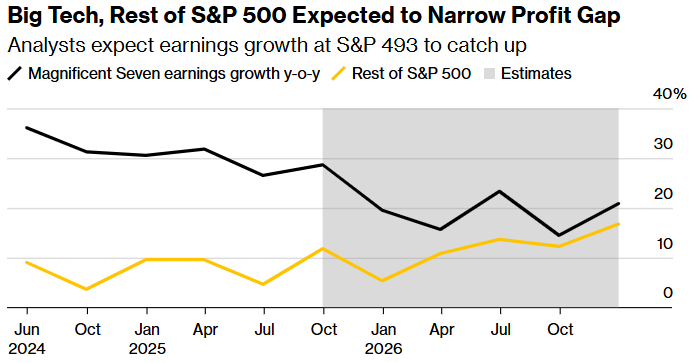 不过,高盛的Snider警告称,这种增长势头要长期持续下去,门槛很高。他表示,目前的预测显示,标普500指数成分股公司2026年的盈利将增长15%,高于其等权重指数10%的增幅。该策略师还预计,2026年下半年和2027年美国经济增长将放缓,“这将限制大范围扩大轮动的空间”。