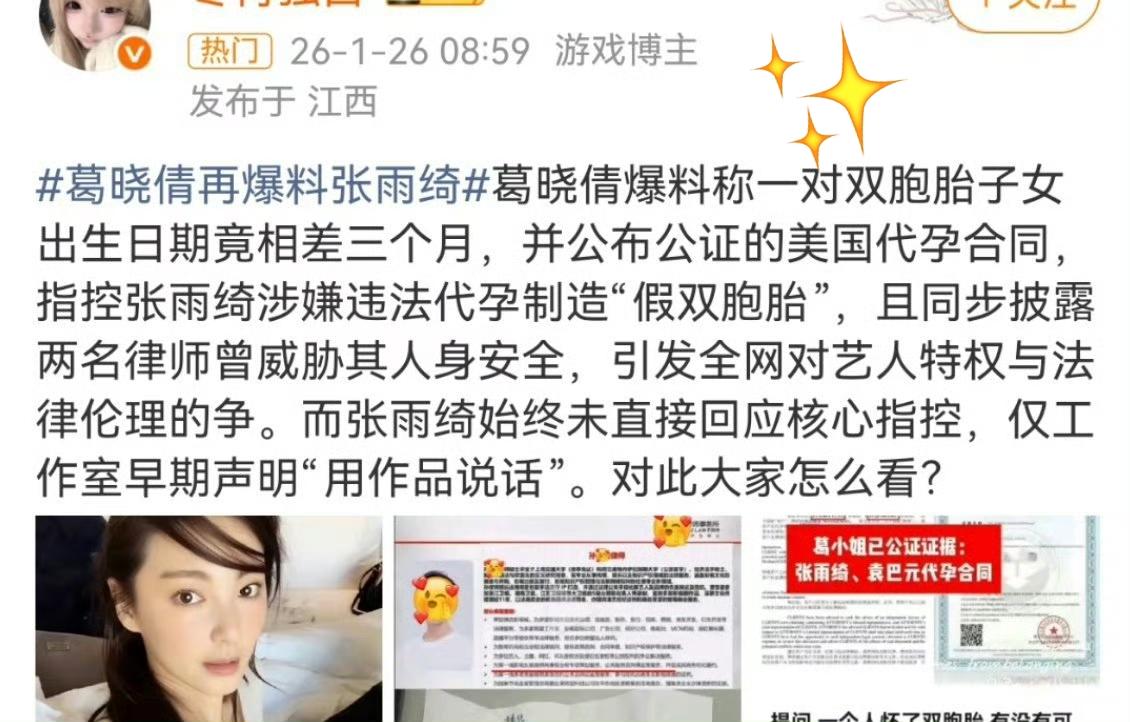 张雨绮的孕照是杨天真发的, 孩子的满月照还是杨天真发的, 再回头品品杨天真那句“真诚是交流状态, 不是知无不言的泄底”, 细品下来满是门道! 杨天真的“真诚”太有分寸了, 发孕照只晒肚子不提胎数, 发满月照只说两个宝宝却不点明是双胞胎, 全程点到为止不透露更多细节, 把专业公关的度拿捏得死死的。 可这份看似专业的“留白”, 如今却成了舆论的疑点, 毕竟网友要的不只是模糊的信息, 更是实打实的真相。 张雨绮向来以“刚”出圈, 遇事从不含糊, 可面对当下的争议, 偏偏缺了这份干脆, 其实真要自证清白本就不是难事, 比起旁人的旁敲侧击, 当事人的直接回应才最有力量。 说到底,公关的话术再高明, 也抵不过当事人的一句实锤, 越是沉默越容易让猜测发酵。 你觉得张雨绮该用哪种方式直接自证,才能彻底平息这场争议? 评论区聊聊你的看法!