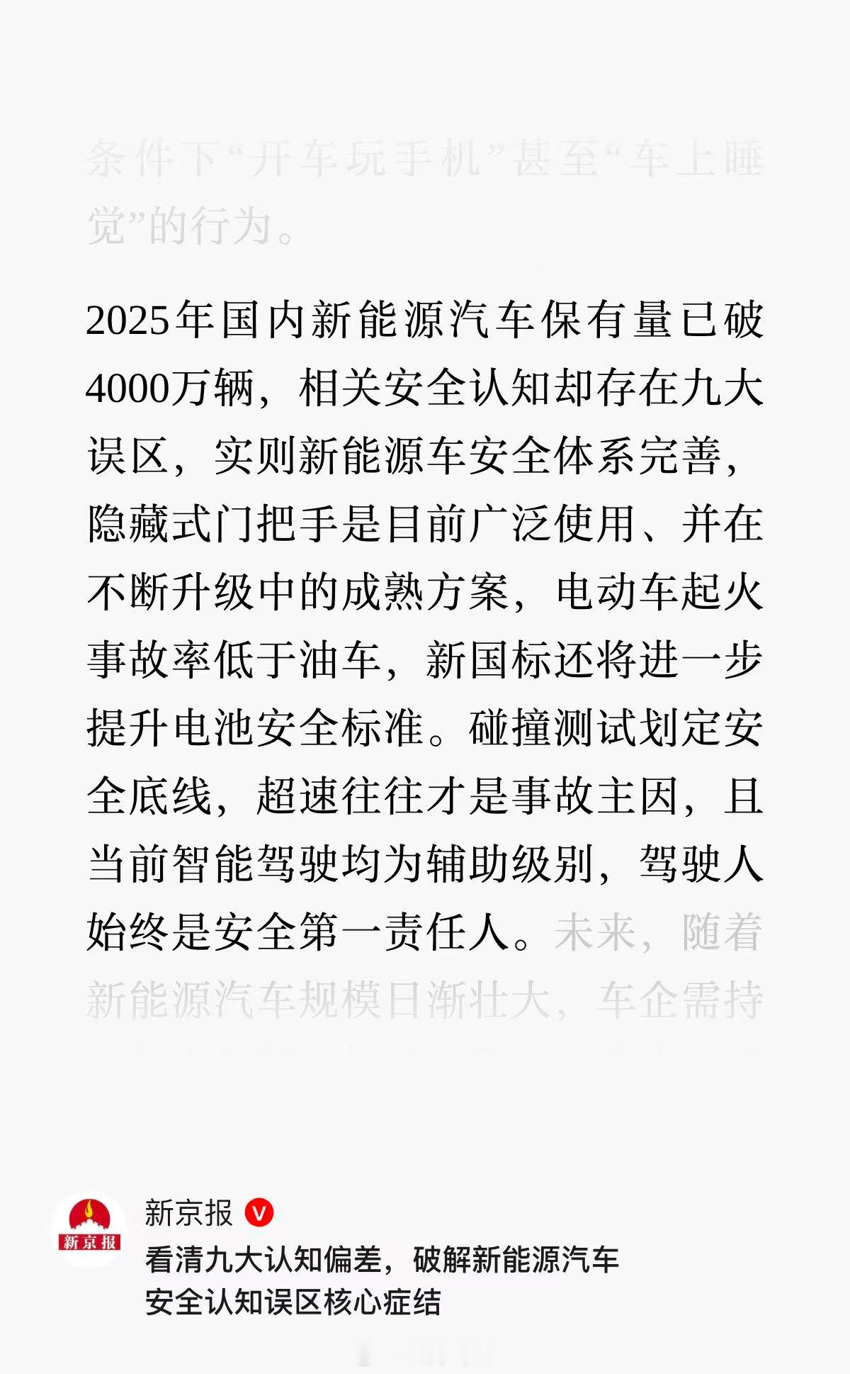 汽车隐藏式门把手存量超千万澄清9大新能源车安全误区随着2026年车圈竞争压力越来越大,这种类似的话题也会越来越多。看上去好像是与什么安全有关,其实这背后暗流涌动,这牵涉的东西太多了。现在人们还在琢磨电车品牌之间要怎么打,我提醒你们一下,现在已经不是电车和电车之间的对战了,现在已经是油车阵营掀桌反击电车,电车不仅要面对同阵营的背刺,还要顶住油车阵营的攻势才能活到最后。很多新能源的品牌老觉得会抢走自己客户的绝对是另一个新能源品牌,实际上,现在更多的人又开始重新考虑购买油车了,那句:“给我一个买电车的理由!” 仍然没有过去,它还在坊间流传着。很多电车事故被放大,很多电车的人为失控被归纳为技术或安全隐患,你们总在电车圈子里找凶手,你们就没想过是油车阵营干的?你们有没有发现,上周是小破维修店说“我们不为小米汽车服务”,而今天有不少已经改成“因为xxxxx隐患,我们不为新能源服务了”,你们还没反应过来吗?说什么隐藏门把手危险,这不过是三方竞争之下,被扔出来的一个引线而已。引入一点新京报的内容,目前国内配置隐藏式门把手的车超过1000万,因为这个门把手引发的事故有几个?这么大的数据和零星的事故放在一起,这能成敏感话题吗?而且,现在隐藏式门把手的技术一直在改进,包括各种应急设计,车内机械应急拉手,碰撞后会触发自动弹出机制等等。我目前见过最多的因为隐藏式门把手给普通车主带来的困扰,就是在一些特冷的地方,下雪或寒潮之后,特斯拉那种门把手被冻住了,DY上每年都会有不少小段子,大家相互嘲讽几句。但这不是特斯拉的问题,其实油车时代这样的事一直也有,比如有时候冬天我的车门也打不开,被半化的雪水给冻住了,需要给两拳,或是热水浇一下门缝才行。当然,不冷的地方可能人们没见过,情有可原。至于有人说,出了车祸之后,救人的时候拉不开,你们可以翻阅一下,还没流行电车的时候,油车出事故门打不开的案例太多了,打不开门的可能性也极多,所以不应该把所有锅都放给隐藏式门把手。像我买的小米YU7这种,不也是隐藏式吗?它的安全机制就很不错啊,甚至它也不怕冰冻,往里一推就可以,比那种往外弹的更人性化。隐藏式门把手一直在改进或完善,现在这个时候又把一些老事拿出来翻旧帐,完全就是另有所图。这些东西以后国家绝对都会有很健全的法规和要求,所有新事物发展都会遇到各种行业和人们认知上的阻碍,挺正常,大家理性讨论就可以了。能聊急眼的一般都是商业行为。另外,因为新能源太过于火了,这两年人们把所有注意力都放在了新能源,实际上油车的事故,各种问题从来就没停过,只是你们不关注而已。真正新能源应该注意的地方,其实是驾驶者要对电车有一个全新的认识,从考驾照环节就应该有一个很明确的指导方向,新能源非常多的事故都是因为超速、过度依赖辅助驾驶导致的。大家苦苦号召了这么久,仍然有人开辅助驾驶睡觉,仍然有人不看路,这才是交通安全最大的隐患。最近dy上看到好几个,因为某品牌自动驾驶出事故,他上网骂的。这种要怎么同情?人们反复强调现阶段驾驶人才是第一责任人,谁给你的自信用的时候可以不看路的?这种危害的程度远比隐藏式门把手可厉害多了。所以除了要不断完善车上的各种功能以外,对驾驶者的正确引导,对车辆功能的正确普及,也是重中之重。我们不能让智能驾驶这么好的东西,被某些企业、某些个人、某些媒体的夸大宣传给毁掉。最后别忘了我上面说的,现在的车圈大战,新能源企业面临的是自家阵营,和油车阵营的双杀局面,是选择联合同阵营抵御,还是选择各自为营,被人逐个击破,一定要想好。2026个绝对会有品牌被打下去,一但下去了,就很难上来了。。。。。。。。。新能源阵营里,像小米这么抗黑和抗打的品牌可不多。
