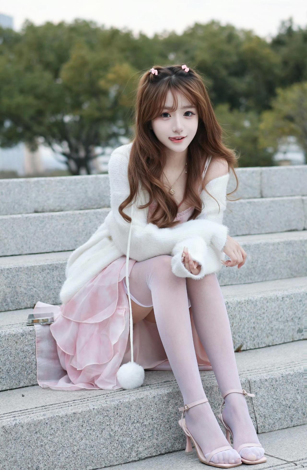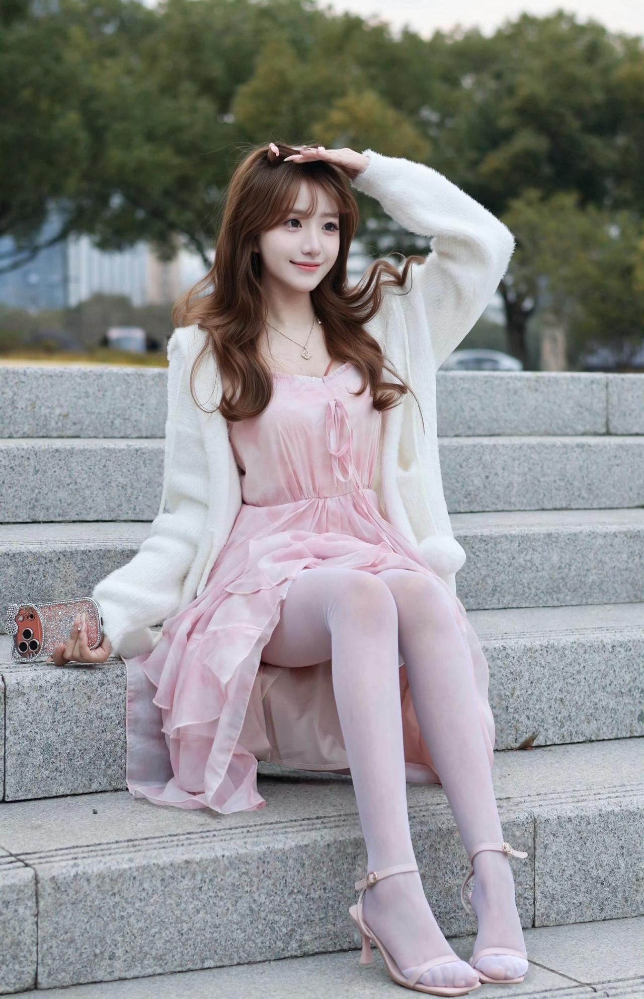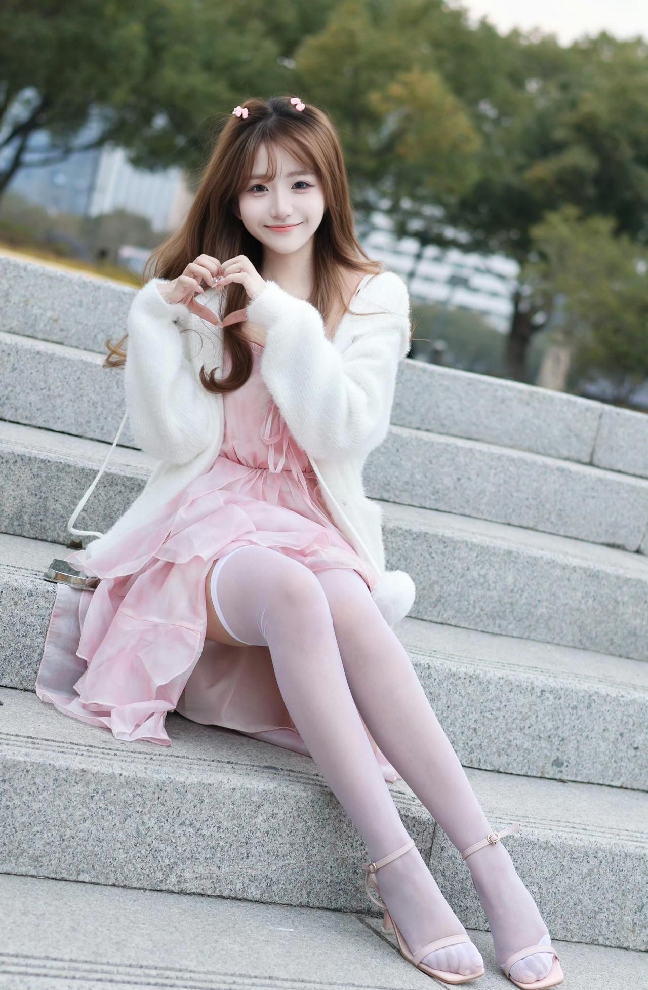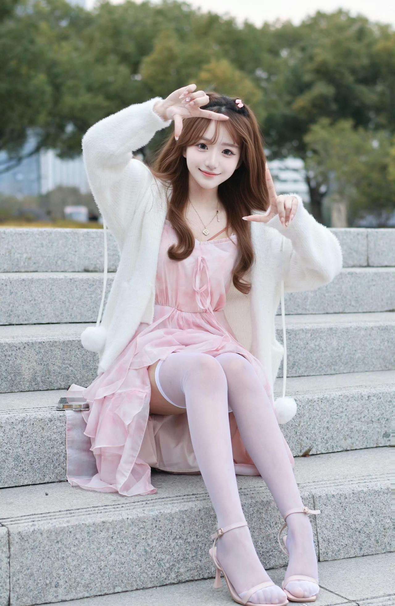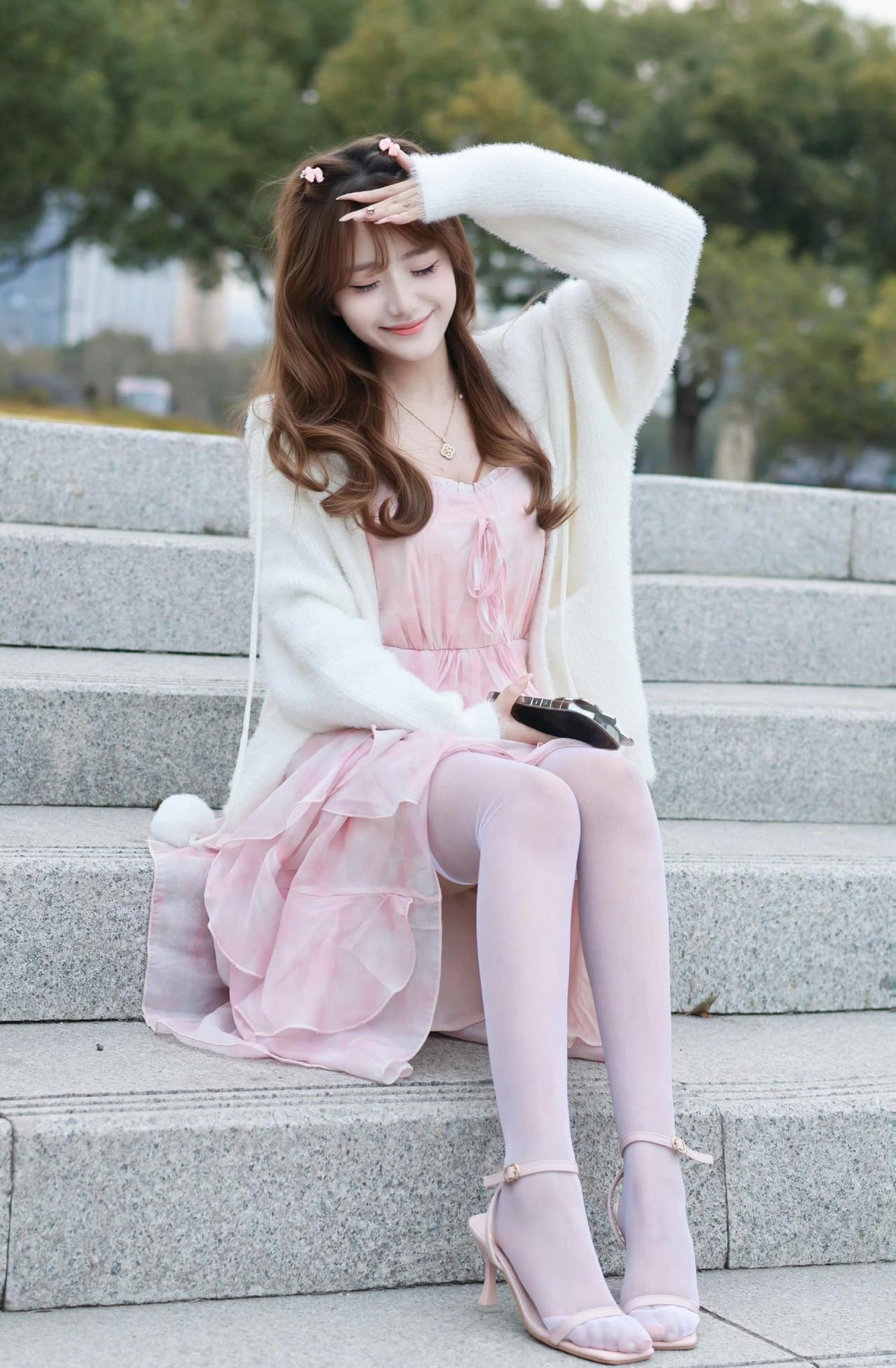 这套穿搭是甜软温柔的粉白甜美风,把少女感与轻熟细节融合。粉色吊带裙自带柔美元素,层层裙摆添灵动;外搭白色毛绒开衫强化甜软氛围。 搭配同色系浅粉凉鞋呼应整体柔和调性,发饰添少女细节,和清新户外环境高度契合。充分展现穿着者甜软温柔的魅力。粉系少女感穿搭 温柔粉色穿搭