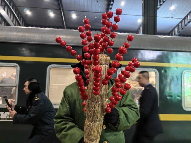 除了站台上的秧歌迎宾,列车内还有冰雪主题的“文化长廊”。极光观赏角、特色照片墙、移动邮局和书香车厢等布置,让旅客沉浸式感受北国风光。冻梨、冻柿子、糖葫芦等东北特色美食免费供应,成为旅途中的“甜蜜惊喜”。来自南方的游客张先生一边拍照一边感慨:“还没到漠河,就已经体验到了东北的热情,这趟车坐得太值了!”