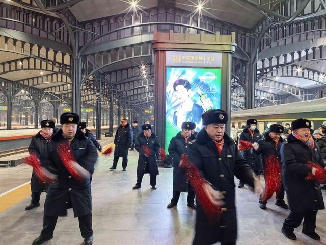 近日,哈尔滨开往漠河的K7039次列车站台上,一场红火热闹的东北秧歌吸引众多乘客。乘务员们身着花袄、手持冻梨糖葫芦,以欢快的舞步和极具地域特色的方式迎接旅客,让这趟通往“中国最北”的列车,从出发伊始就充满了浓浓的东北风情与暖意。