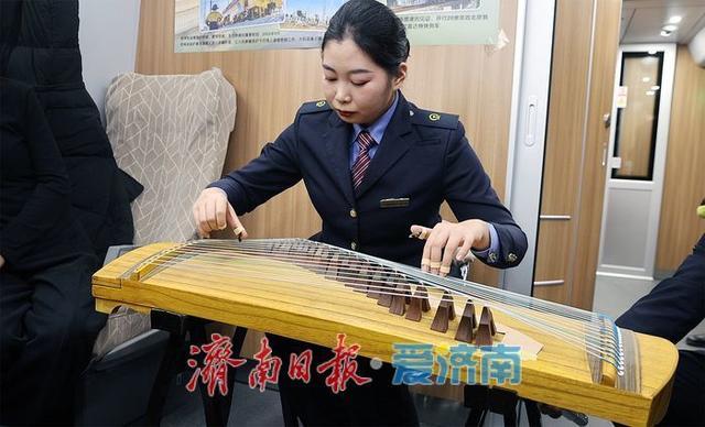 首发列车以“春运焕新程・动集绘江南”为主题,精心打造客乘互动活动,让旅客在体验新车升级的同时,感受铁路服务从快到好的转变。车厢内,乘务员化身“讲解员”,生动介绍“绿巨人”车型特性与沿线风光,并引导旅客现场体验新车设施;乘务员现场演奏《春江花月夜》,为疾驰的列车增添了几分江南雅韵;“小马送糖葫芦”暖心环节同步开展,搭配铁路文化、春运安全贴士与线路知识有奖问答,让漫长旅途充满趣味与温情。