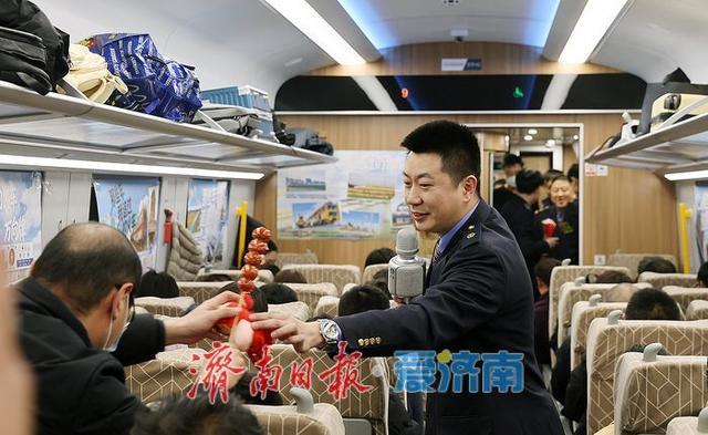 列车举办问答活动,答对的旅客获得糖葫芦一串。