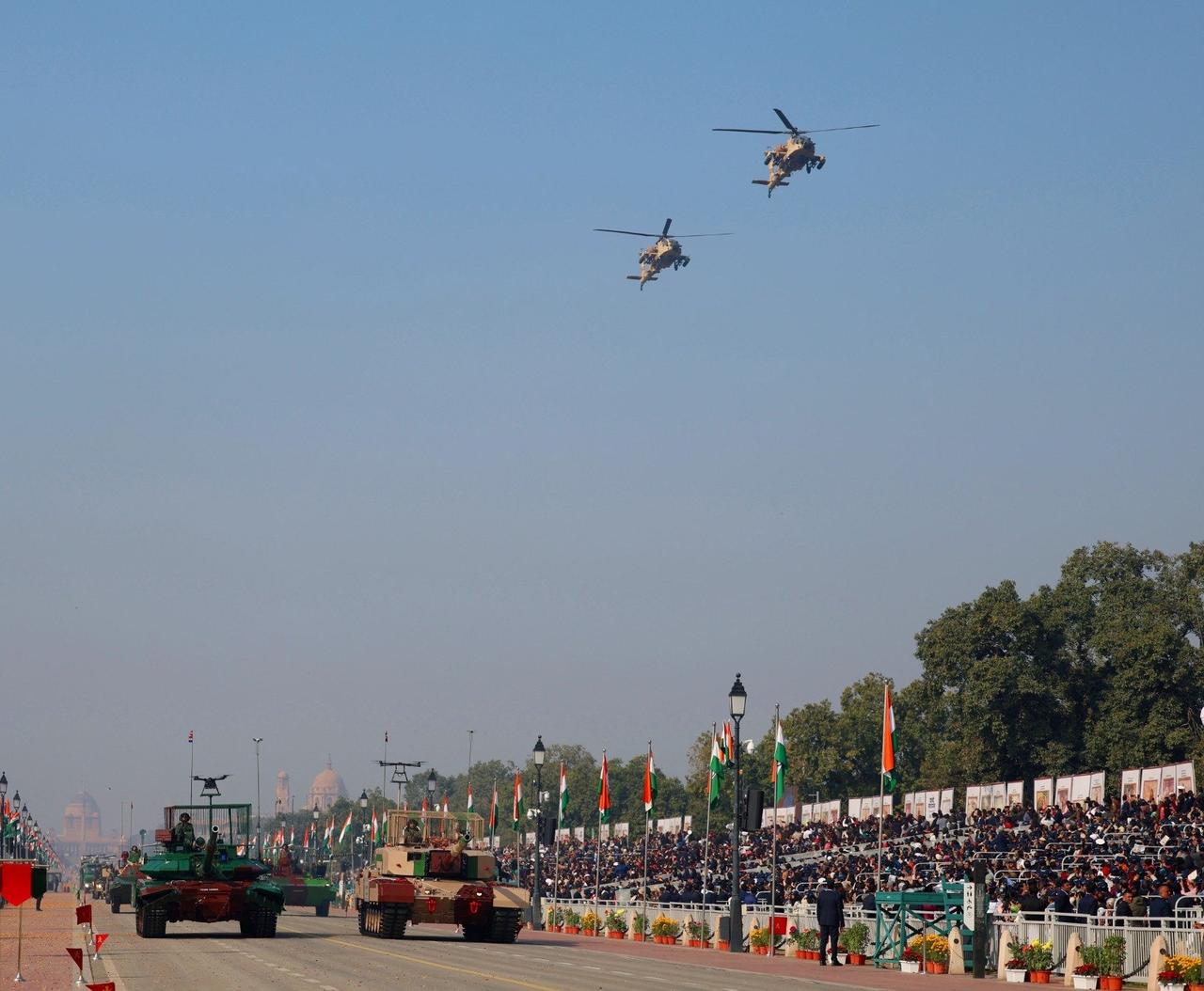 印度阅兵 印度总理莫迪:今天,在共和国日庆祝活动中,卡尔塔维亚大道见证了强烈的民族自豪感。 印度举行阅兵仪式庆祝国庆,正在印度访问的欧洲理事会主席安东尼奥·科斯塔和欧盟委员会主席乌尔苏拉·冯德莱恩出席。