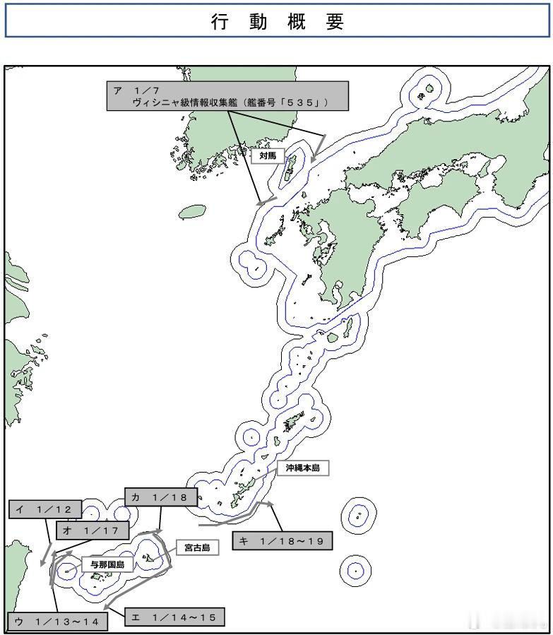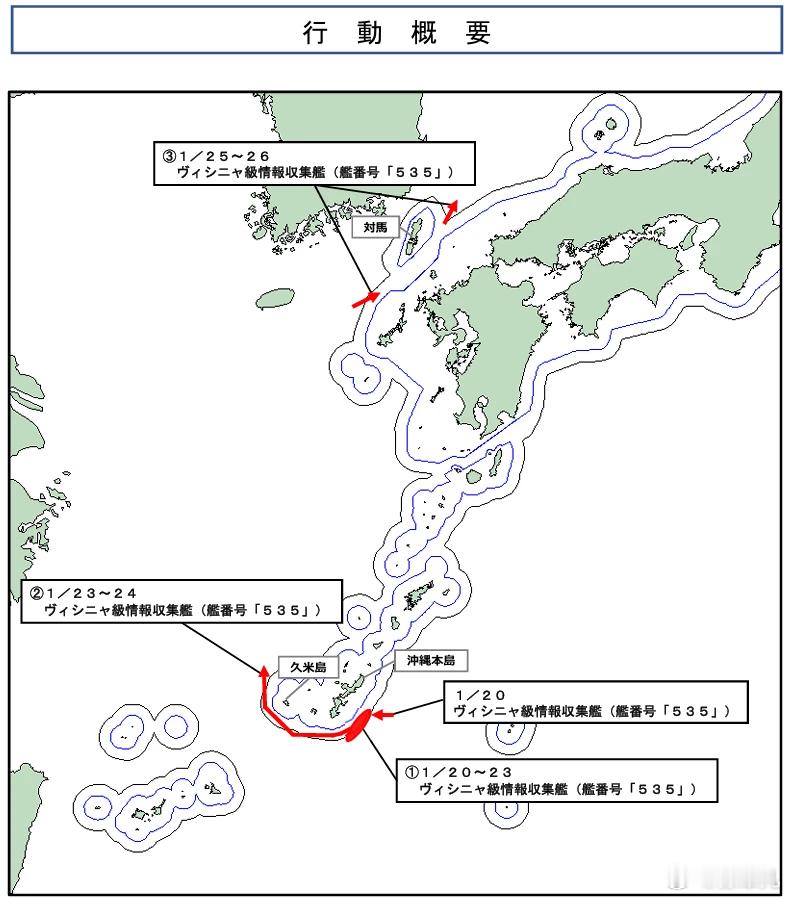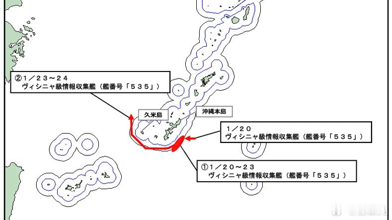 日本自卫队:俄罗斯海军864型电子侦察船在冲绳群岛周边持续递近侦察,巡航时间近半月日本自卫队统合幕僚监部1月26日发布公告称,当地时间1月20日上午4时许,日本海上自卫队在冲绳本岛以东约70公里的海域,确认到1艘俄海军864型电子侦查船(舷号535)正在向西航行。此后该舰动向确认如下:20日至23日,该舰在包括冲绳本岛东侧至东南侧水域持续巡航;23日至24日,该舰在冲绳本岛东南侧至久米岛西北水域航行;25日至26日,该舰通过对马海峡向东北航行,最终驶往日本海。