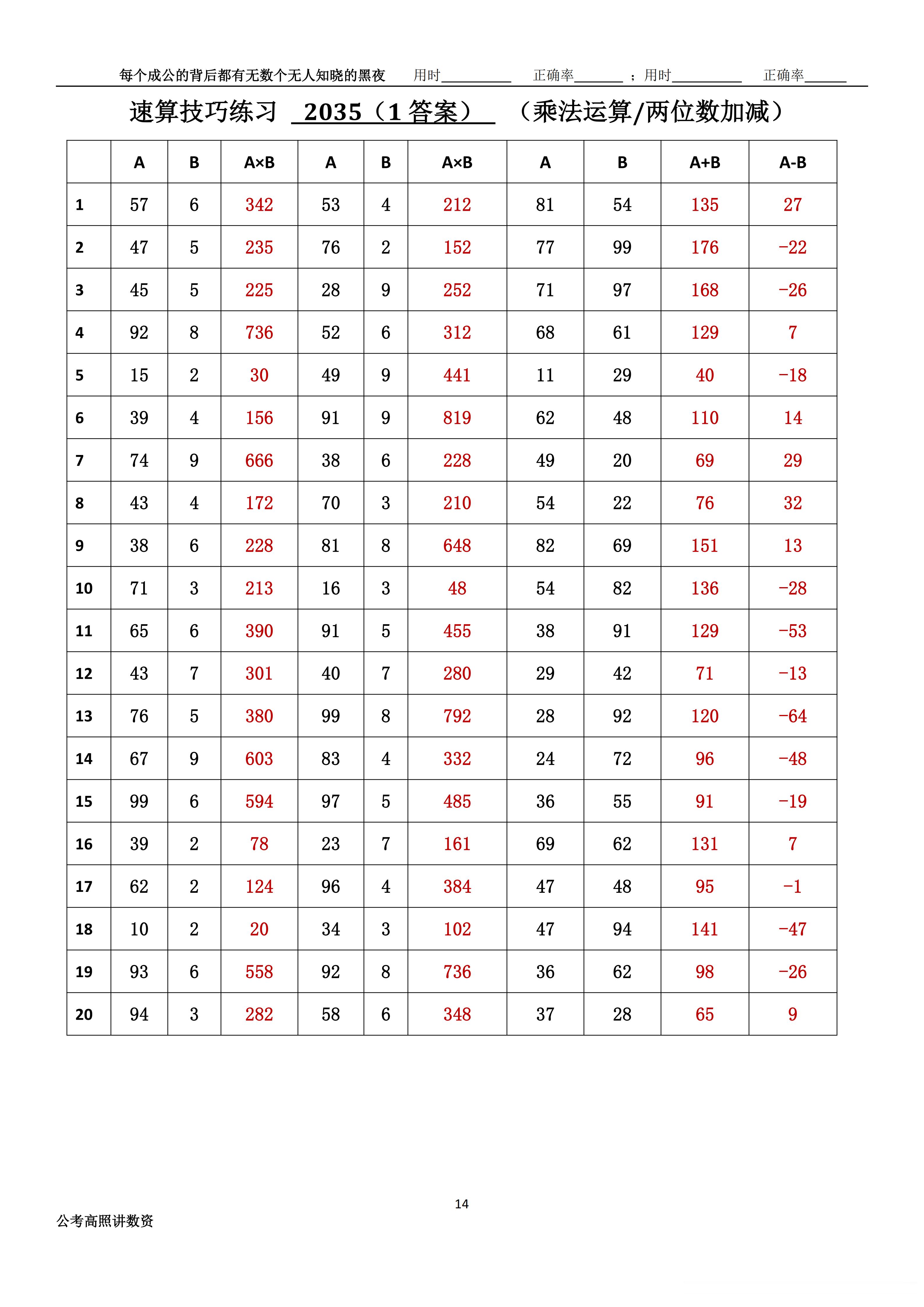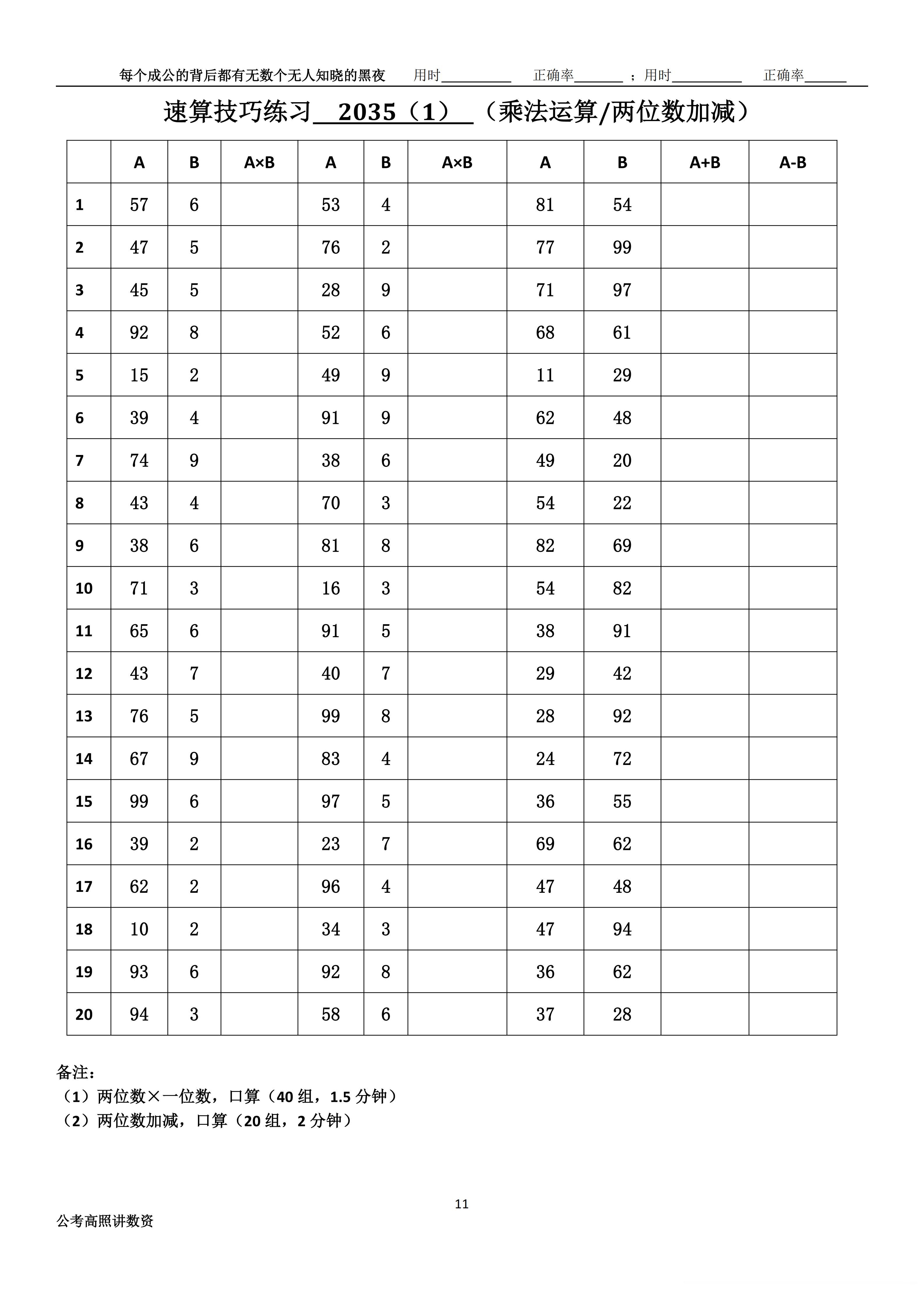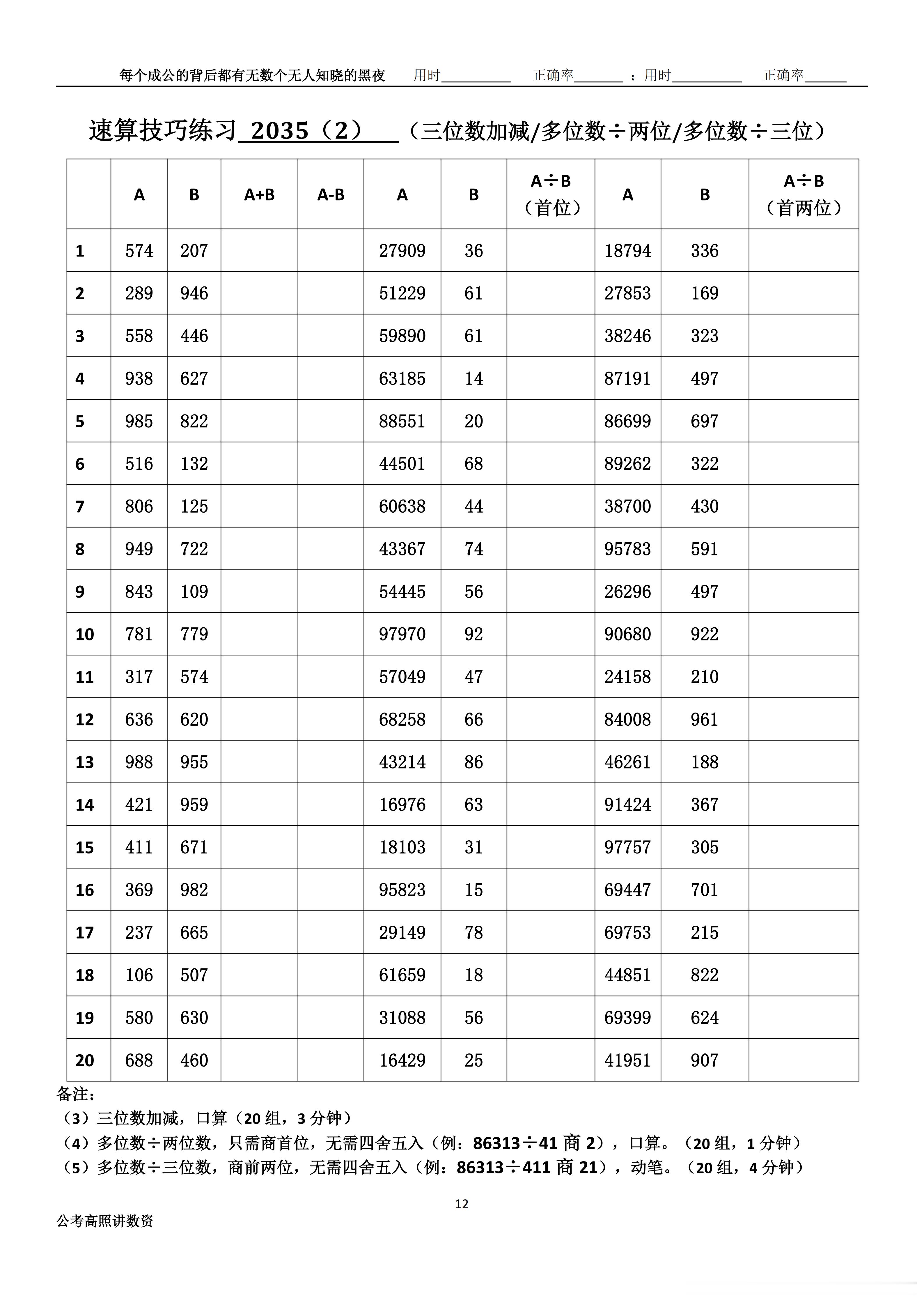 跟着高照练速算决战公考 速算练习2035相信自己,努力学习。速算链接汇总:网页