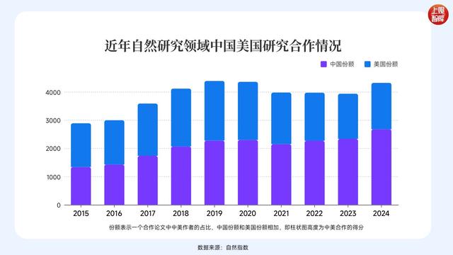 自然出版集团发布的自然指数(NatureIndex)通过分析数据库文献中不同国家作者的数量,得出了国家地区合作的份额,来表示一个国家对于世界研究合作的参与程度。从中美合作过去几年的份额来看,有两个大趋势。