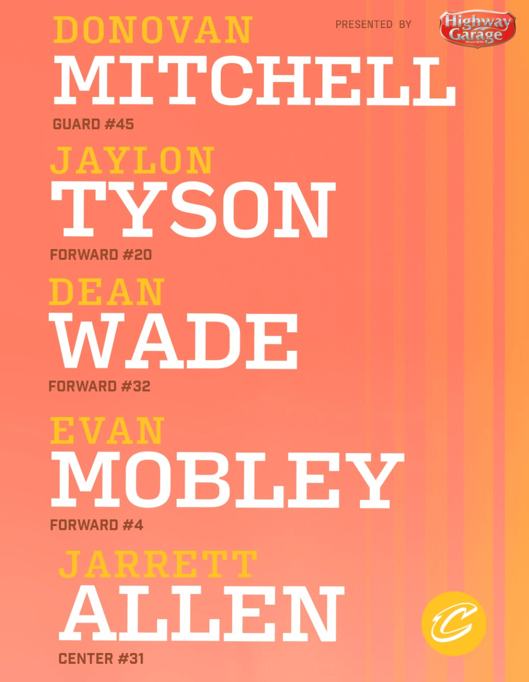 赛前,骑士官方公布球队本场首发阵容:多诺万-米切尔、杰隆-泰森、迪恩-韦德、埃文-莫布利和贾勒特-阿伦。