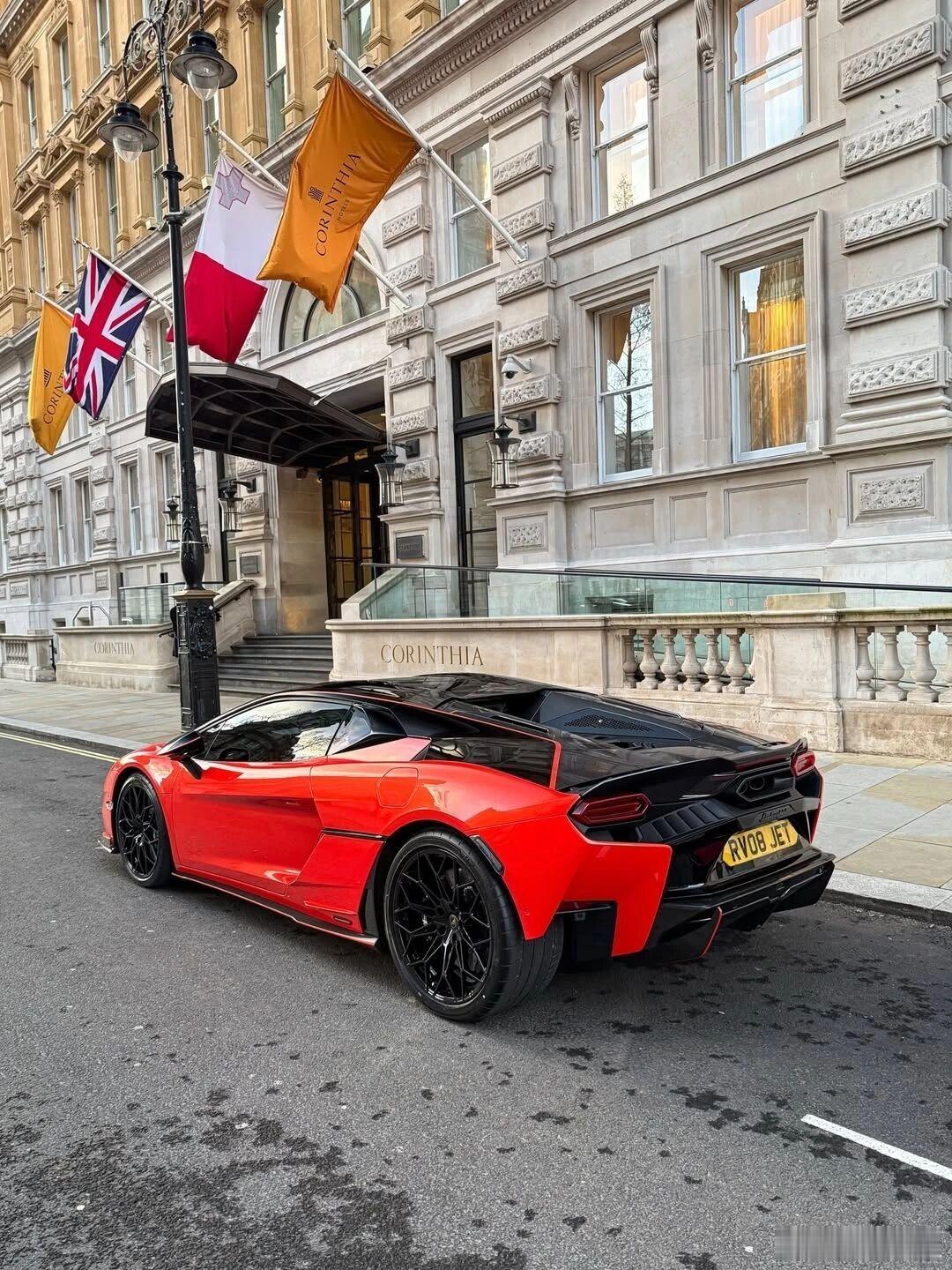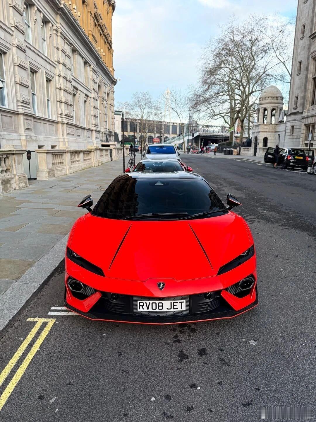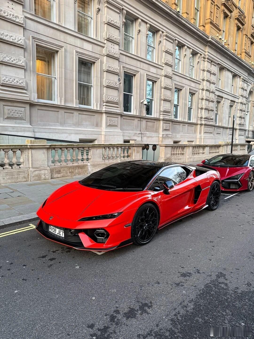 兰博基尼Temerario 烈焰红潮席卷伦敦街头,920匹混动狂暴动力,2.7秒