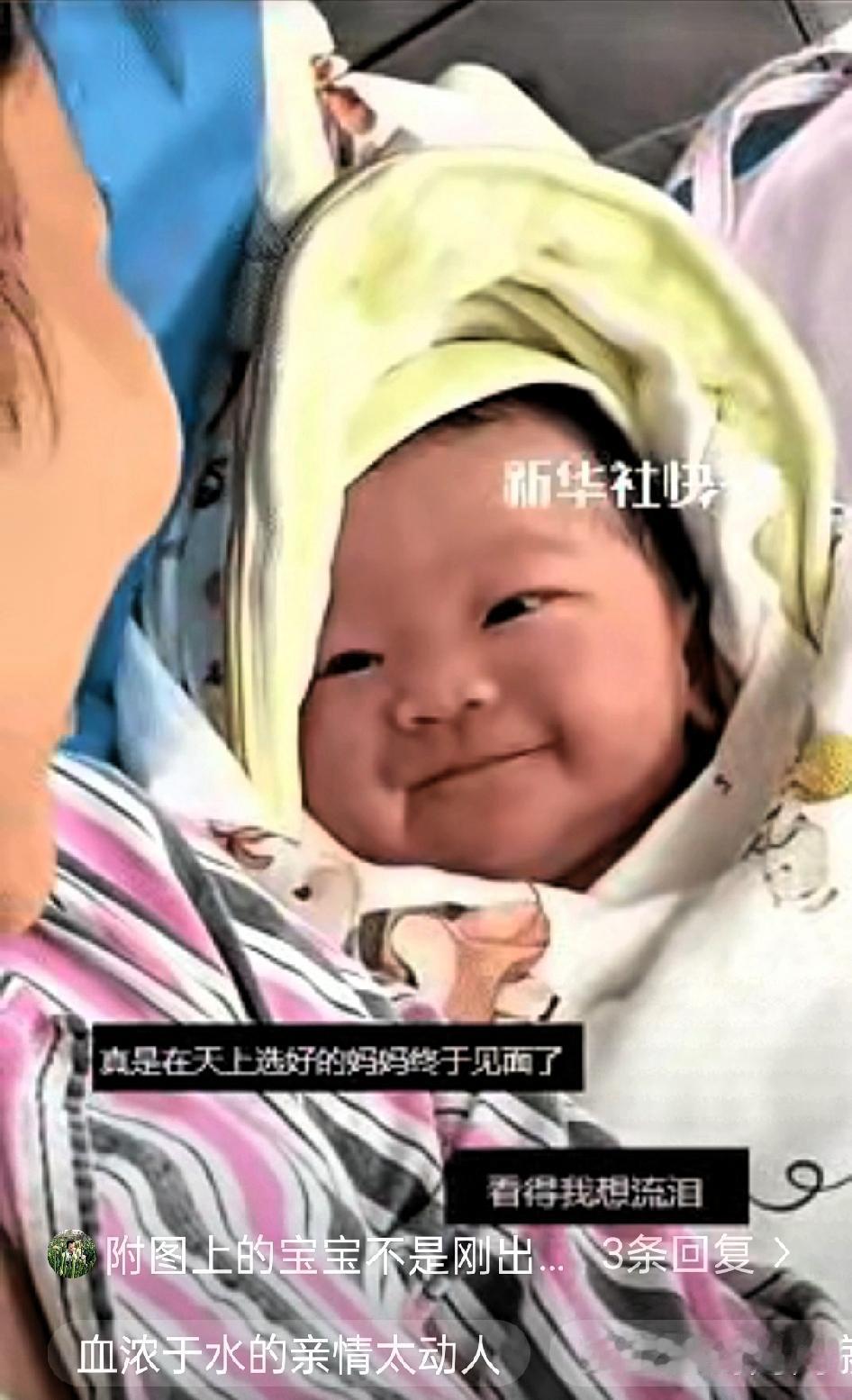 “科学都解释不清了!”贵州六盘水,一刚出生不久的宝宝,乖乖躺在小床上,前一秒还绷着小脸,眼神呆呆地瞅着天花板,活脱脱一个不苟言笑的小大人。 结果就那么轻轻一转头,瞧见了躺在旁边的妈妈,小家伙瞬间眼睛一亮,嘴角立马咧开,露出了毫无杂质的笑容,那软乎乎的模样,好像在说“妈妈,我终于找到你啦”。 孩子爸爸随手把这个暖心瞬间拍下来分享到网上,很快就收获了大量关注。评论区里全是感慨的网友,有人说“这绝对是宝宝在妈妈肚子里就熟悉的气息,一闻到就安心”;还有人表示“这眼神太纯粹了,就是见到最亲近的人才有的模样”,每一条评论都透着满满的感动。 从科学角度来说,刚出生的宝宝视力还很模糊,看不清妈妈的模样,但他们能精准分辨妈妈的心跳和专属气味。 十个月的同体时光,妈妈的怀抱就是宝宝最安稳的港湾,这份刻在基因里的亲近,根本藏不住。但我觉得,这不止是本能,更是一场双向奔赴的缘分。妈妈忍着十月怀胎的辛苦、分娩的疼痛,满心期待着宝宝的到来;宝宝带着对妈妈的天然依赖,来到这个世界上。 这份不用言语的亲近,真的很戳人。没什么比宝宝纯粹的笑容更治愈的了,这大概就是人世间最温暖的血脉羁绊,无关乎任何条件,只因为你是我的妈妈,我是你的宝贝。