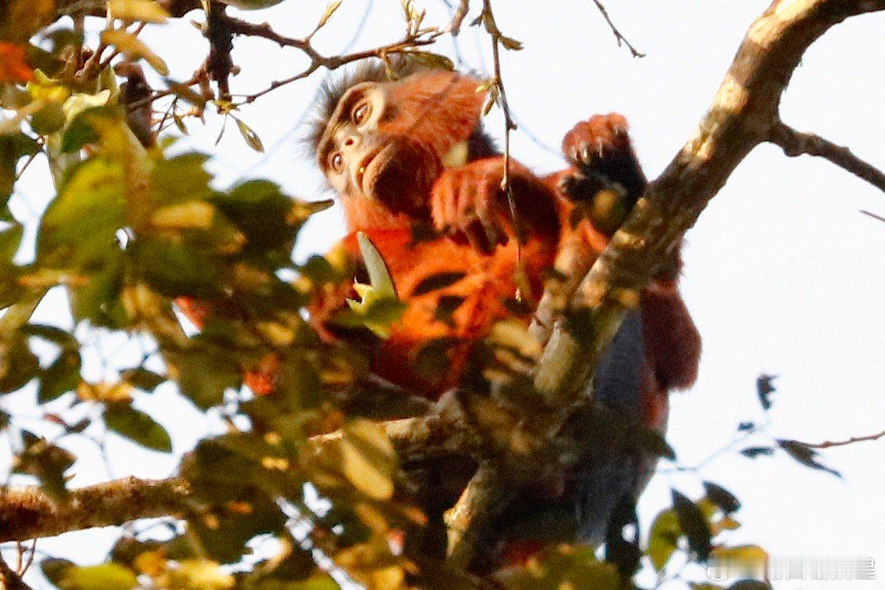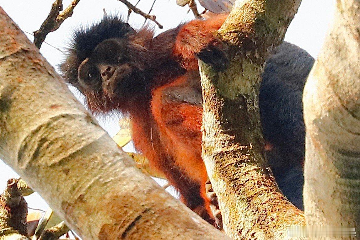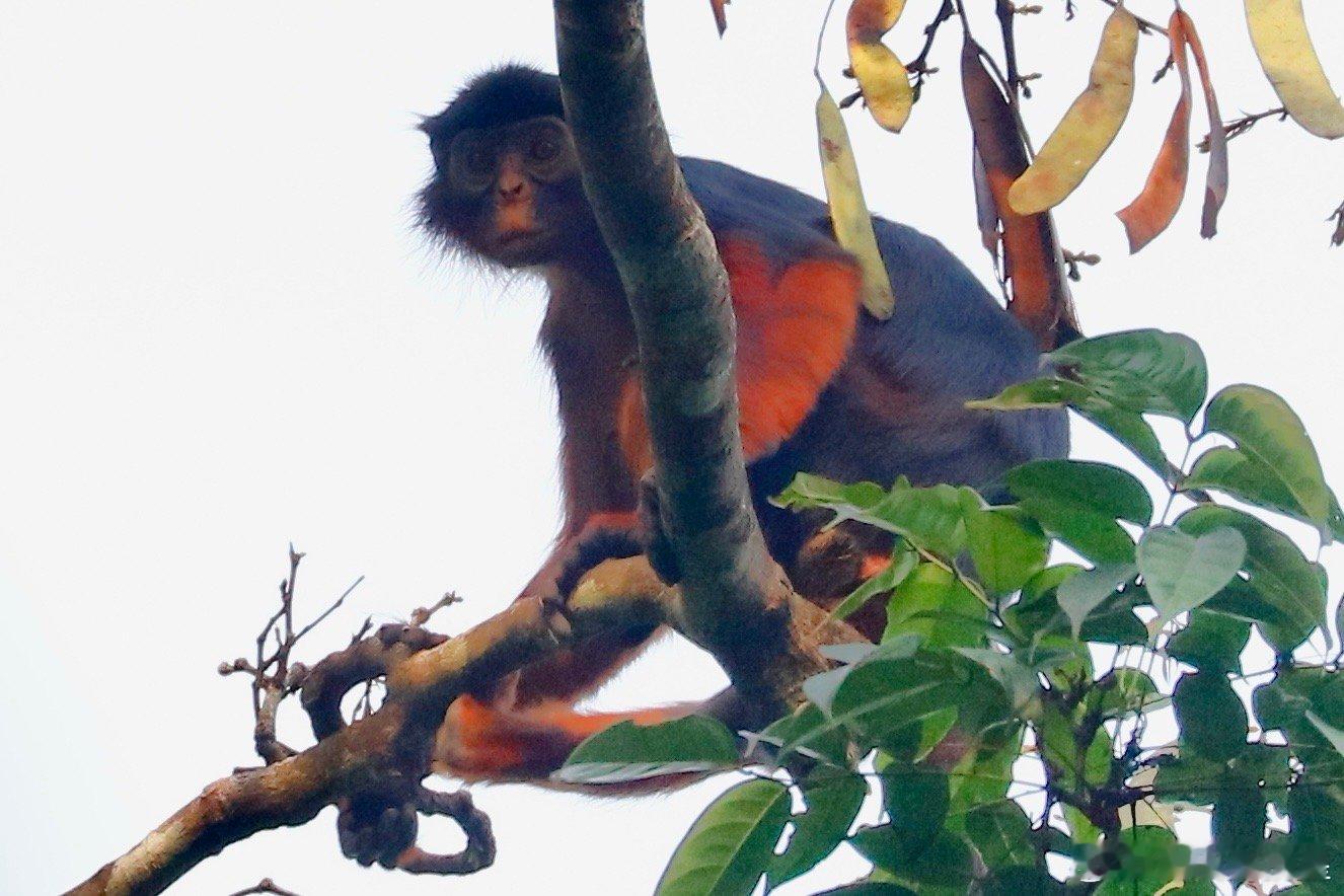 世界自然遗产塔伊国家公园的红疣猴。西非科特迪瓦的塔伊国家公园里面都是原始森林,视线奇差,能参观的动物很少,但红疣猴是个固定的参观项目。红疣猴(学名Piliocolobus badius)是科特迪瓦塔伊国家公园中的树栖灵长类物种之一,它们以叶子和水果为主要食物,通过觅食行为有效促进多种植物种子的扩散,从而支持森林的再生和生物多样性,是西非上几内亚雨林生态系统的关键组成部分。红疣猴属于疣猴科,成年雄性体重9-11公斤,雌性6-9公斤,寿命最长可达20年。它们形成小型社会群体,规模通常在20至60只个体之间。雌性在性成熟后会离开出生群体进行扩散,这种机制有助于维持遗传多样性。红疣猴的领地通常小于1平方公里,有一群红疣猴的领地就在塔伊公园护林营地附近,游客可以在导游带领下徒步前往观察,但是没有路,游客只能在密林中穿梭,行走艰难,我就被树枝刮伤了。红疣猴的主要活动范围集中在森林树冠层,必须仰着脖子看,而且它们移动速度很快,窜来窜去的,很不好拍,但这也没办法,因为红疣猴几乎一生都在树冠层(高度20-40米)度过,极少下到地面。它们眼神很好,每次拍的时候都会被它们发现,但是这群猴子被拍惯了,离得也远,所以不是很怕人。红疣猴们的树冠生活能让它们避开地面捕食者,如豹和人类,但也面临很多威胁,如猛禽和黑猩猩。黑猩猩是红疣猴最主要的捕食者,尤其在雨季,黑猩猩群体会频繁发起狩猎,将红疣猴作为首要猎物。一个黑猩猩群体每天可能进行2-3次狩猎,通过伏击、驱赶或直接在树上捕杀等方式完成,雨季每天可捕杀数只。由于数量稀少且种群规模持续下降,红疣猴已被IUCN列为濒危物种,塔伊国家公园是其核心栖息地。谢田的环球足迹
