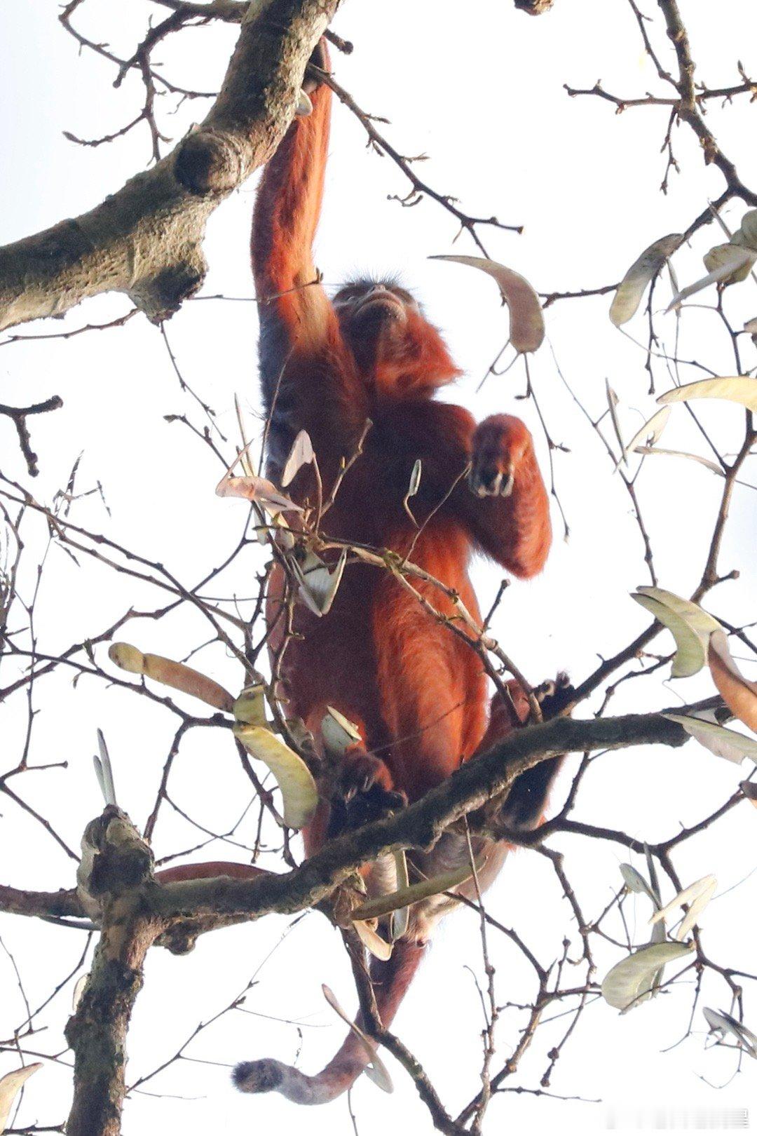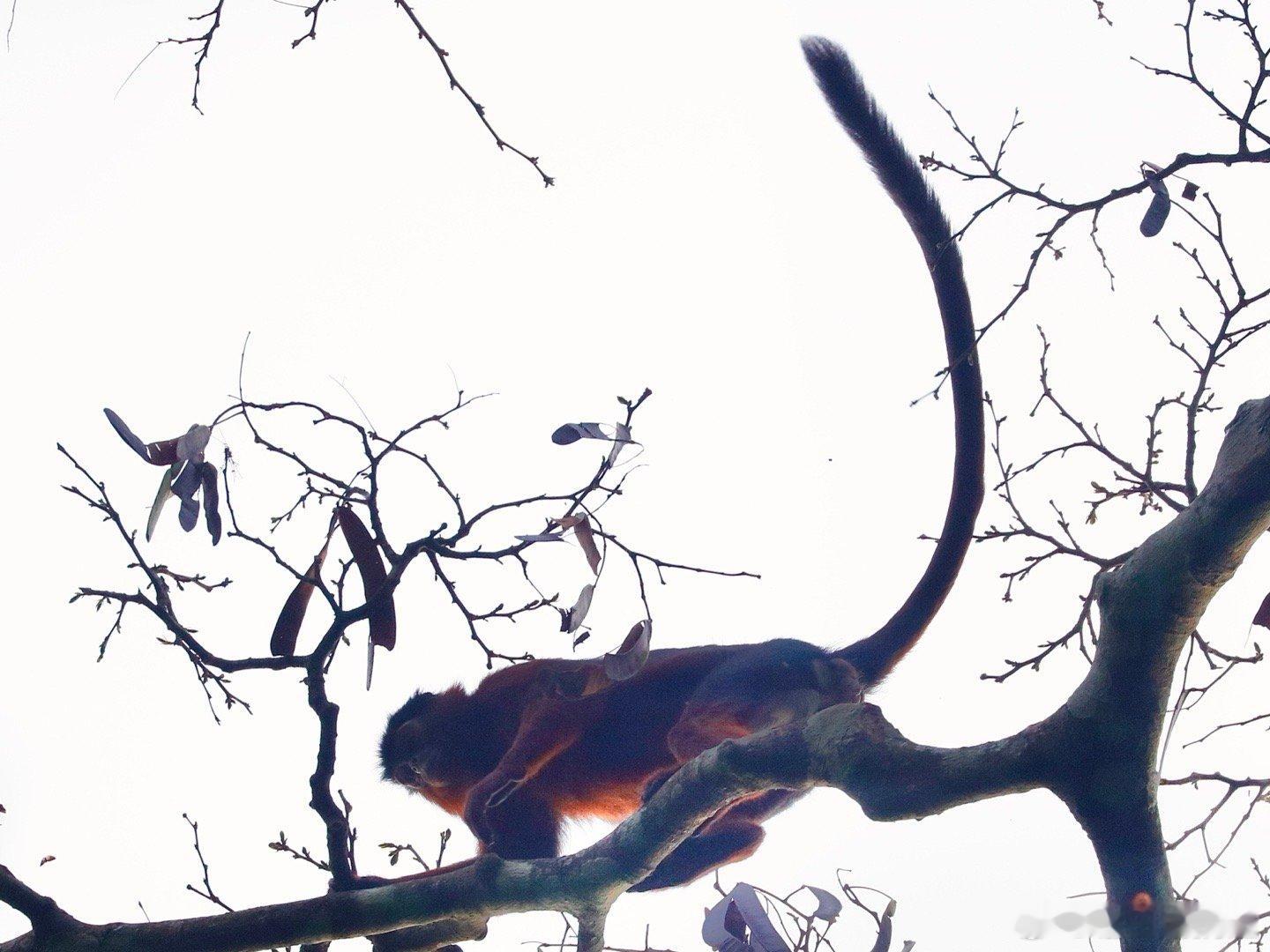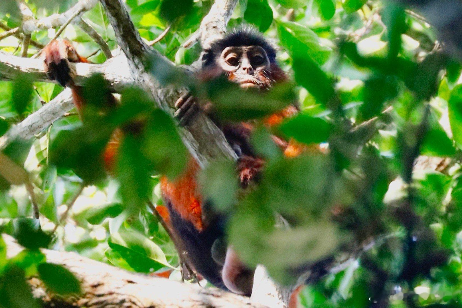 世界自然遗产塔伊国家公园的红疣猴。西非科特迪瓦的塔伊国家公园里面都是原始森林,视线奇差,能参观的动物很少,但红疣猴是个固定的参观项目。红疣猴(学名Piliocolobus badius)是科特迪瓦塔伊国家公园中的树栖灵长类物种之一,它们以叶子和水果为主要食物,通过觅食行为有效促进多种植物种子的扩散,从而支持森林的再生和生物多样性,是西非上几内亚雨林生态系统的关键组成部分。红疣猴属于疣猴科,成年雄性体重9-11公斤,雌性6-9公斤,寿命最长可达20年。它们形成小型社会群体,规模通常在20至60只个体之间。雌性在性成熟后会离开出生群体进行扩散,这种机制有助于维持遗传多样性。红疣猴的领地通常小于1平方公里,有一群红疣猴的领地就在塔伊公园护林营地附近,游客可以在导游带领下徒步前往观察,但是没有路,游客只能在密林中穿梭,行走艰难,我就被树枝刮伤了。红疣猴的主要活动范围集中在森林树冠层,必须仰着脖子看,而且它们移动速度很快,窜来窜去的,很不好拍,但这也没办法,因为红疣猴几乎一生都在树冠层(高度20-40米)度过,极少下到地面。它们眼神很好,每次拍的时候都会被它们发现,但是这群猴子被拍惯了,离得也远,所以不是很怕人。红疣猴们的树冠生活能让它们避开地面捕食者,如豹和人类,但也面临很多威胁,如猛禽和黑猩猩。黑猩猩是红疣猴最主要的捕食者,尤其在雨季,黑猩猩群体会频繁发起狩猎,将红疣猴作为首要猎物。一个黑猩猩群体每天可能进行2-3次狩猎,通过伏击、驱赶或直接在树上捕杀等方式完成,雨季每天可捕杀数只。由于数量稀少且种群规模持续下降,红疣猴已被IUCN列为濒危物种,塔伊国家公园是其核心栖息地。谢田的环球足迹