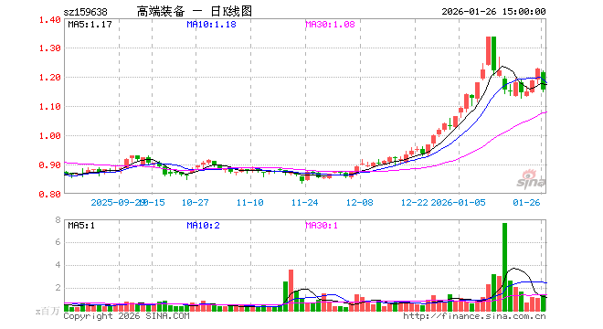 1月26日,高端装备ETF嘉实(159638)跌5.87%,成交额1.54亿元。当日份额增加3300.00万份,最新份额为15.64亿份,近20个交易日份额减少3.84亿份。最新资产净值计算值为18.04亿元。