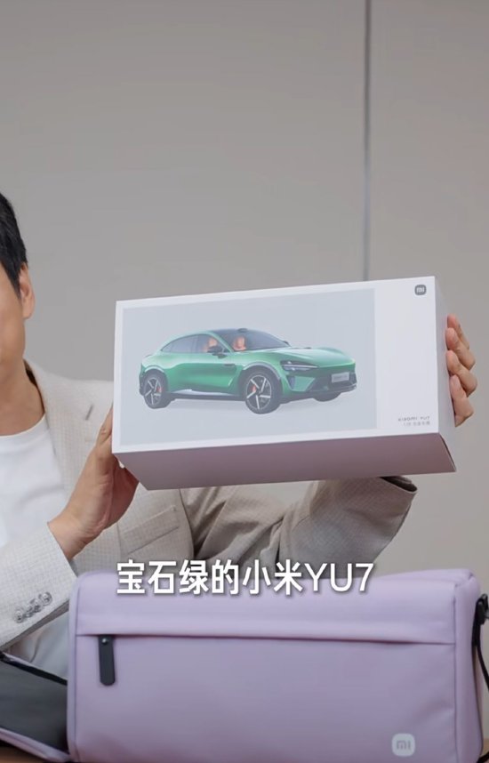 他介绍,新春礼物包括一个吐司包、贺卡、车模盲盒和新春礼盒。雷军透露,车模盲盒中包括小米SU7、小米YU7、小米SU7Ultra三种车模。雷军现场拆出了宝石绿的小米YU7车模。