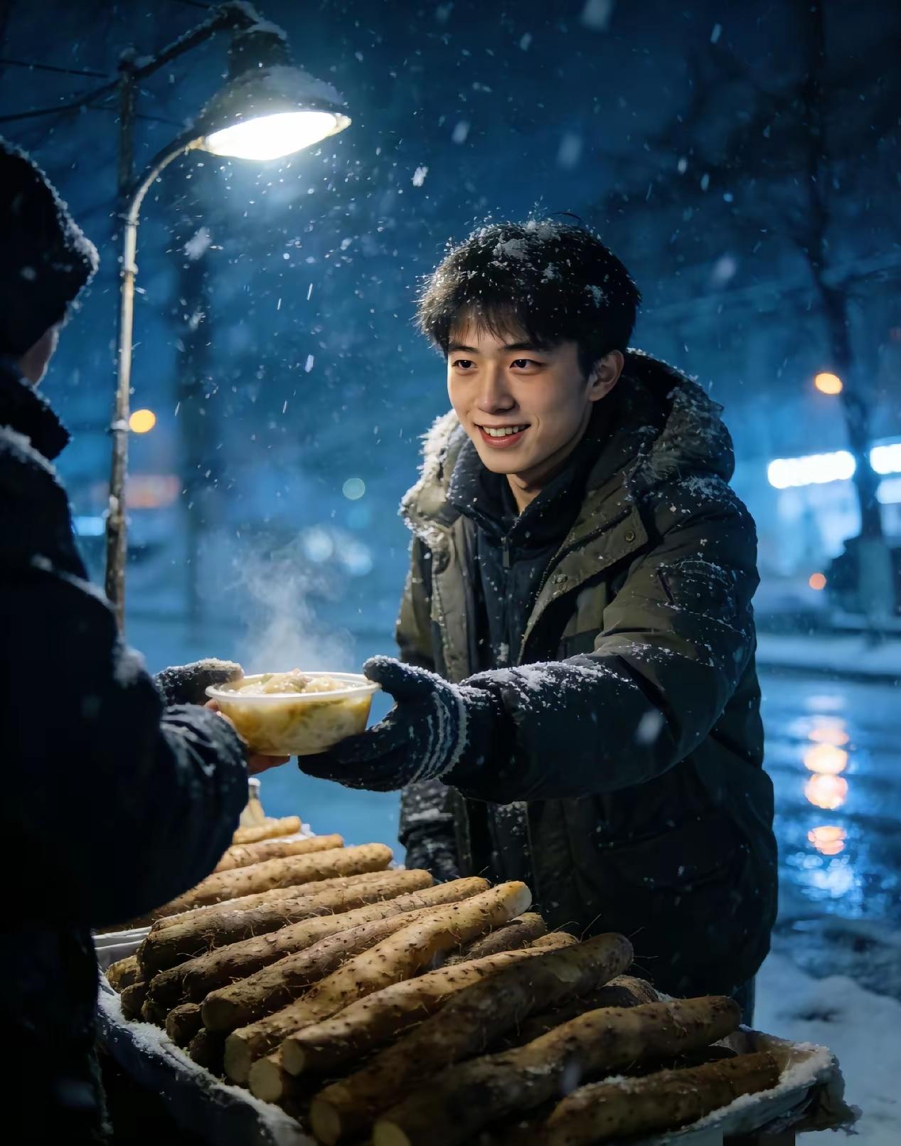 郑州暴雪夜,00后大学生街头跳舞卖山药,ICU里的父亲等着救命钱,妈妈刚走,弟弟还小,他把所有苦都咽进肚子里。 那是一个深夜,郑州气温骤降至零下10度,鹅毛大雪铺天盖地,路面结冰湿滑,行人寥寥无几。在市中心的公交站台旁,一个穿着单薄棉袄的少年,正跟着手机里的音乐笨拙地跳舞,脚下的三轮车里,装满了刚从老家拉来的山药。他叫李正阳,刚满20岁,是郑州某高校大二学生,此刻他脸上挂着冻出来的红血丝,嘴角却努力扬起微笑,每跳完一段,就对着路过的行人轻声吆喝:“新鲜山药,便宜卖了,叔叔阿姨买点吧。” 没人知道,这个在暴雪里跳舞卖货的少年,心里藏着怎样的千斤重担。三个月前,母亲因肺癌晚期医治无效离世,花光了家里所有积蓄,还欠下了十几万外债。父亲为了撑起家,没日没夜跑货车,却在一个月前突发脑出血,被紧急送进ICU,每天的治疗费用高达几千元。家里还有一个刚上小学五年级的弟弟,只能暂时托付给乡下的姑姑照看。一夜之间,这个还在象牙塔里的少年,成了全家唯一的顶梁柱。 李正阳原本是个开朗活泼的男生,喜欢打篮球,成绩在班里名列前茅。母亲去世后,他就开始利用课余时间兼职,发传单、做家教、在餐厅洗碗,只要能赚钱的活,他都愿意干。父亲倒下后,兼职的收入根本不够支付高昂的医药费,他急得满嘴起泡,头发也大把大把地掉。老家地窖里还存着几千斤山药,是父亲生前种的,本打算春节前卖掉补贴家用,现在成了他唯一的希望。 为了多卖些钱,他每天上完课就骑着三轮车,拉着山药穿梭在郑州的大街小巷。暴雪来临的那天,他本可以待在温暖的宿舍里,但一想到ICU里昏迷的父亲,想到催缴医药费的通知单,他还是咬牙冒雪出了门。路面太滑,三轮车好几次差点侧翻,他只能下来推着走,积雪没过脚踝,冻得他双脚发麻。到了市区,他发现行人太少,生意惨淡,急中生智想起网上看到的“跳舞吸客”的办法,就对着手机视频自学跳舞,哪怕动作僵硬,哪怕冻得发抖,也坚持跳了一个又一个小时。 有路过的市民被他的举动打动,纷纷停下脚步购买山药。一位阿姨看着他冻得通红的手,心疼地说:“孩子,这么冷的天,别跳了,我全买了。”李正阳连忙摆手:“阿姨,不用全买,您需要多少就买多少,谢谢您。”还有几位年轻人,把他跳舞卖山药的视频发到网上,配文“暴雪夜的坚强少年,为父筹钱治病”,很快引发了网友的关注。 短短一夜,视频的播放量突破百万,网友们被李正阳的孝心和坚韧打动,纷纷留言鼓励他,还有不少人主动联系他,想要购买山药或者捐款。第二天一早,就有爱心企业开车来到学校,以高于市场价的价格收购了他所有的山药,还给他捐了一笔善款。医院也了解到他的情况,为他父亲开通了绿色通道,减免了部分治疗费用。社会各界的爱心源源不断地涌来,让这个濒临崩溃的少年看到了希望。 李正阳没有把捐款据为己有,而是全部用于父亲的治疗。他每天依旧按时上课,下课后就直奔医院,照顾父亲的饮食起居,给父亲按摩、讲故事,希望能唤醒他。他说:“妈妈走了,我不能再失去爸爸,弟弟还小,我必须撑下去。”在他的悉心照料和社会各界的帮助下,父亲的病情逐渐好转,慢慢从ICU转到了普通病房,意识也开始清醒。 面对记者的采访,李正阳腼腆地说:“我只是做了一个儿子该做的事,没想到能得到这么多人的帮助。等我爸爸康复了,我一定会努力学习,将来回报社会,帮助更多需要帮助的人。”他的话语朴实无华,却充满了力量。 在这个物欲横流的社会,李正阳用自己的行动诠释了什么是责任,什么是孝心。他没有被生活的磨难击垮,而是选择勇敢面对,用稚嫩的肩膀扛起了全家的希望。暴雪可以冻结路面,却冻结不了人间的温情;困境可以带来痛苦,却打不倒坚强的意志。 李正阳的故事告诉我们,人生难免会遇到挫折和磨难,但只要我们不放弃、不退缩,保持善良和坚韧,就一定能度过难关。而那些在他人困境中伸出援手的人们,用爱心点亮了希望之光,让这个寒冷的冬天变得格外温暖。 各位读者你们怎么看?欢迎在评论区讨论。