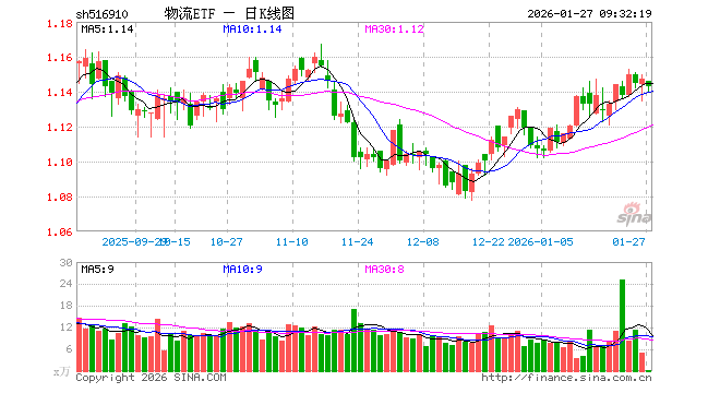 1月27日,物流ETF(516910)开盘跌0.09%,报1.146元。物流ETF(516910)重仓股方面,中远海控开盘涨0.07%,顺丰控股涨0.23%,京沪高铁跌0.20%,招商轮船跌1.41%,大秦铁路跌0.20%,圆通速递涨0.00%,蔚蓝锂芯跌0.69%,中远海能跌0.26%,物产中大涨0.00%,建发股份涨0.00%。