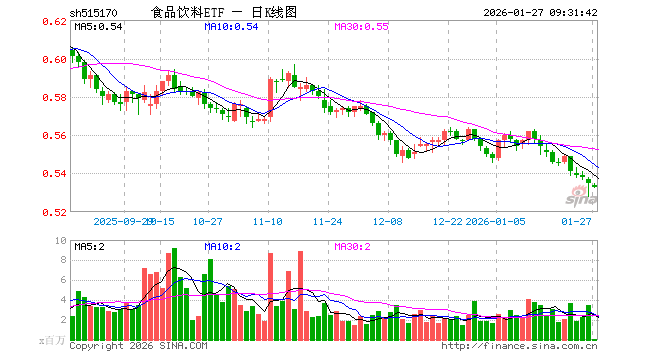 1月27日,食品饮料ETF(515170)开盘跌0.19%,报0.534元。食品饮料ETF(515170)重仓股方面,贵州茅台开盘涨0.22%,五粮液跌0.21%,伊利股份涨0.04%,泸州老窖涨0.15%,山西汾酒涨0.36%,海天味业跌0.03%,东鹏饮料涨0.47%,洋河股份跌0.73%,安琪酵母涨0.00%,今世缘跌0.39%。