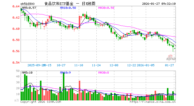 1月27日,食品饮料ETF基金(516900)开盘跌0.35%,报0.565元。食品饮料ETF基金(516900)重仓股方面,贵州茅台开盘涨0.22%,五粮液跌0.21%,伊利股份涨0.04%,泸州老窖涨0.15%,山西汾酒涨0.36%,海天味业跌0.03%,东鹏饮料涨0.47%,洋河股份跌0.73%,双汇发展涨0.00%,安琪酵母涨0.00%。