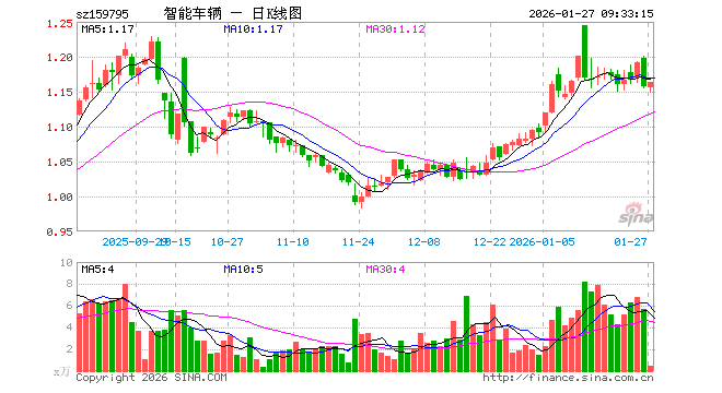 1月27日,智能汽车ETF汇添富(159795)开盘跌0.09%,报1.156元。智能汽车ETF汇添富(159795)重仓股方面,拓普集团开盘跌0.18%,豪威集团跌0.10%,科大讯飞涨0.48%,比亚迪涨0.04%,长安汽车涨0.00%,赛力斯涨0.06%,芯原股份跌0.00%,立讯精密涨0.43%,德赛西威跌1.09%,北京君正跌1.47%。
