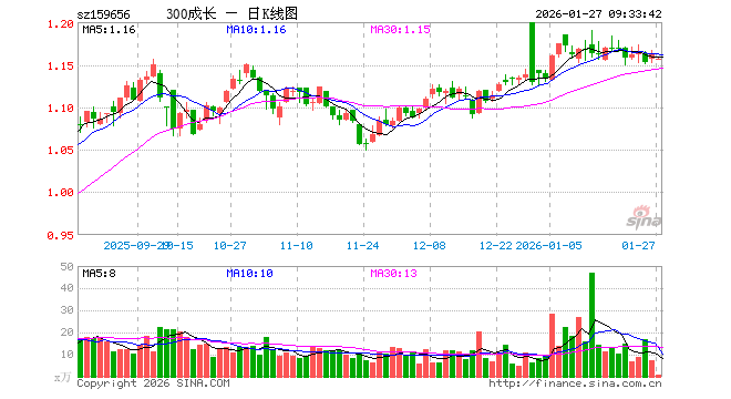 1月27日,沪深300成长ETF万家(159656)开盘跌0.43%,报1.156元。沪深300成长ETF万家(159656)重仓股方面,宁德时代开盘涨0.83%,贵州茅台涨0.22%,中际旭创涨0.03%,紫金矿业涨1.85%,新易盛跌0.28%,寒武纪涨0.00%,立讯精密涨0.43%,恒瑞医药涨0.40%,比亚迪涨0.04%,阳光电源涨0.21%。