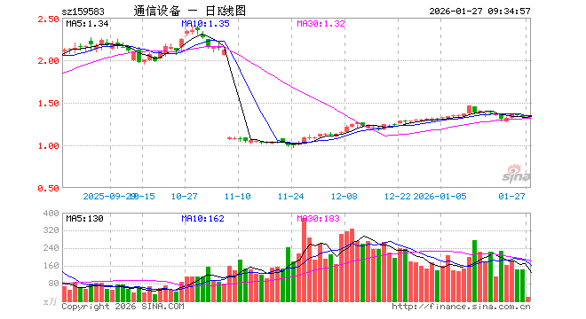 1月27日,通信设备ETF(159583)开盘跌0.38%,报1.318元。通信设备ETF(159583)重仓股方面,中际旭创开盘涨0.03%,新易盛跌0.28%,中兴通讯跌0.05%,天孚通信涨0.84%,航天电子跌2.90%,中国卫星跌4.52%,紫光股份跌0.27%,中航光电跌0.44%,剑桥科技跌0.81%,光迅科技跌0.46%。