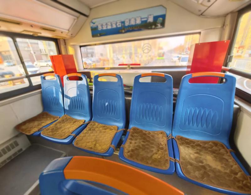 一位头发花白的大妈刚坐下,兴奋地对旁边人说:“公交公司想得真周到!每年十月到第二年三月,整整半年免费坐公交,这又专门安上坐垫,真好。”