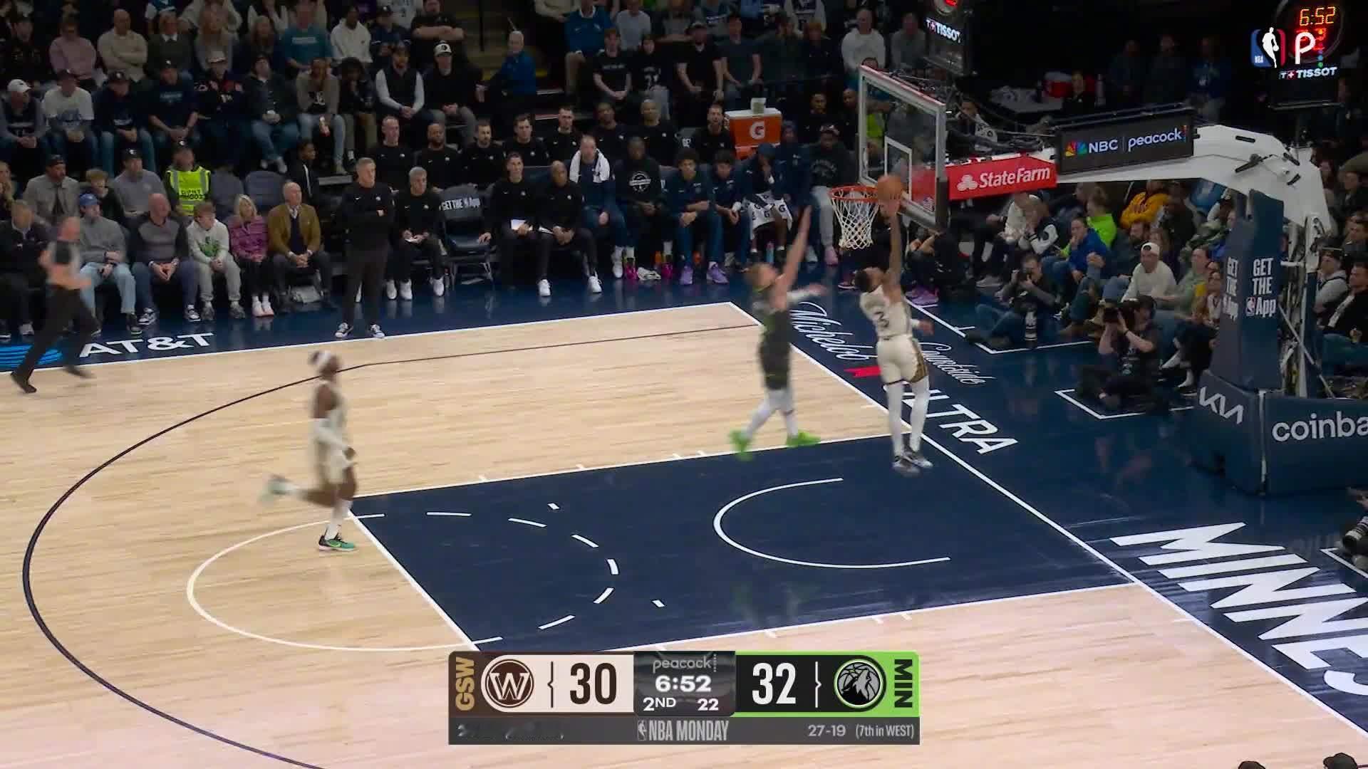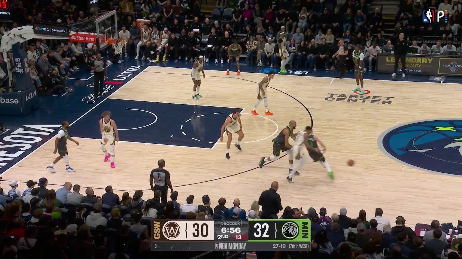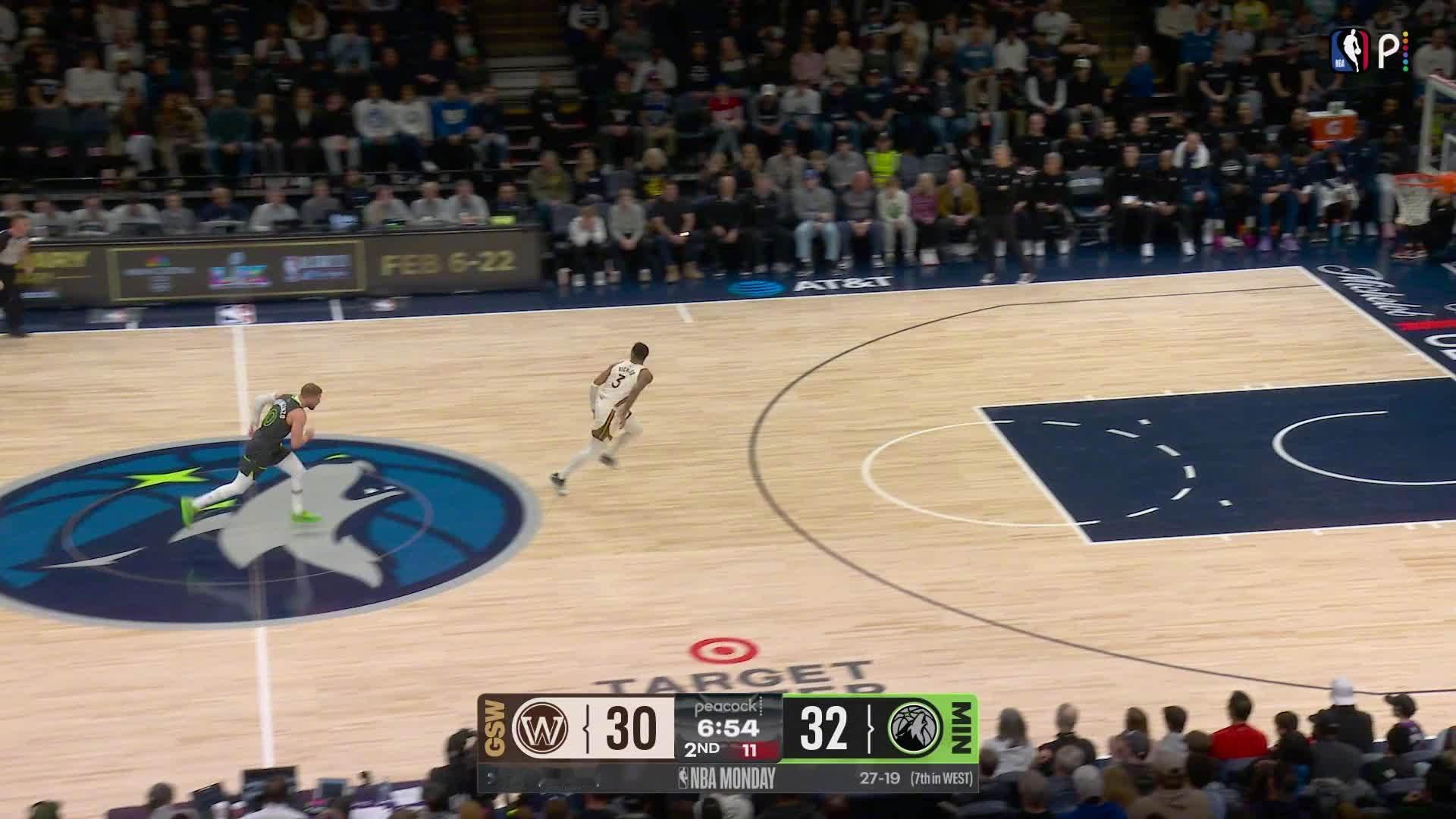 理查德抢断后一条龙得分!勇士vs森林狼