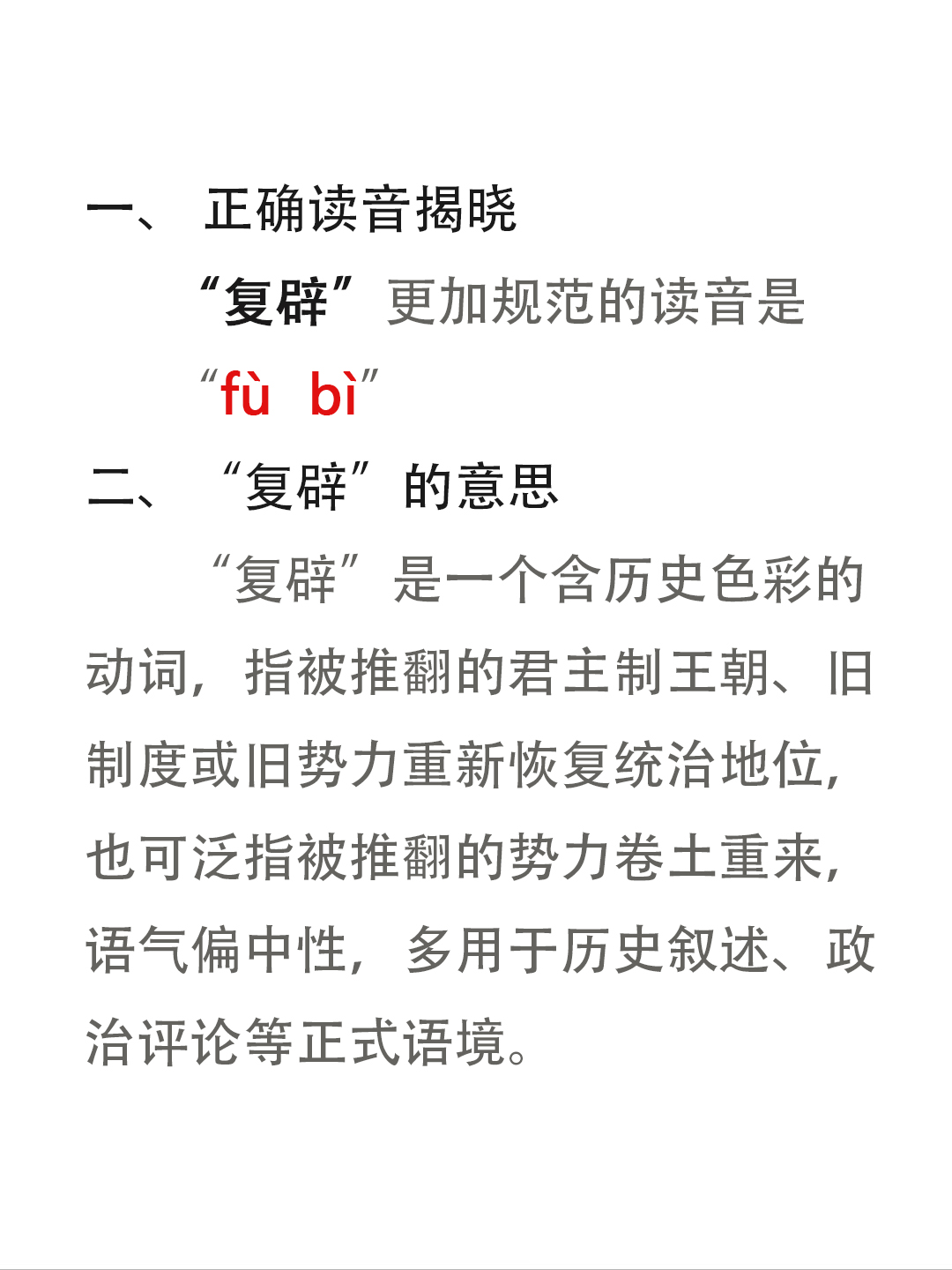 “复辟”竟然不读fù pì,正确读音是什么?你知道吗?