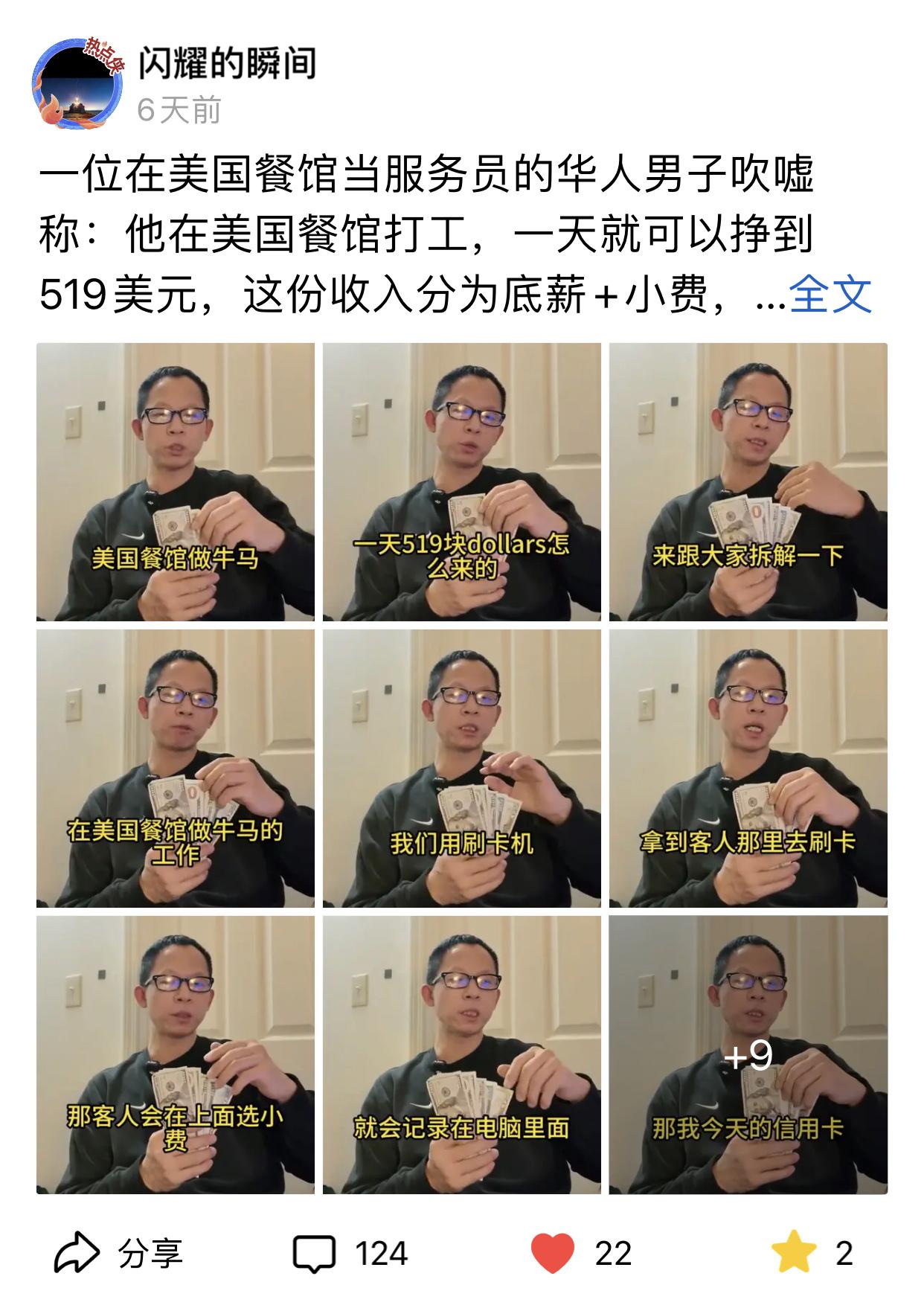裸考青年 2 2026-01-28 16:02 随便想一想就知道,这货咱们说谎,咱们就是坑了客户的钱,,不管哪一种,老板都不可能留下他,老美15美元/小时的底薪,他哪怕干20小时,也就300美元,这种地方消费客人给的小费怎么可能超过时薪?所以咱们是他多刷了小费,要么是说假话