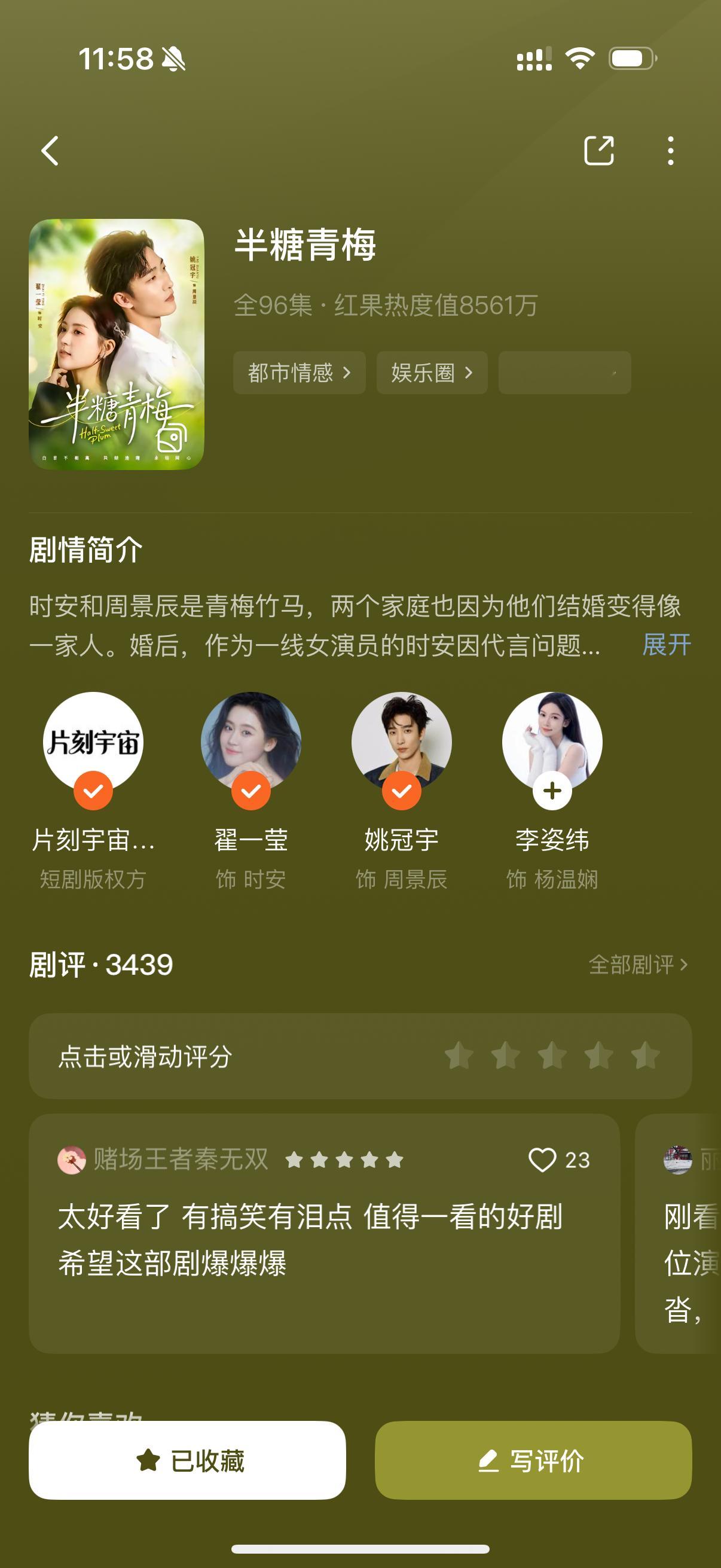 半糖青梅 过气女明星VS毒舌导演,当初错过的,时间都酿成了故事。姚冠宇翟一莹演技
