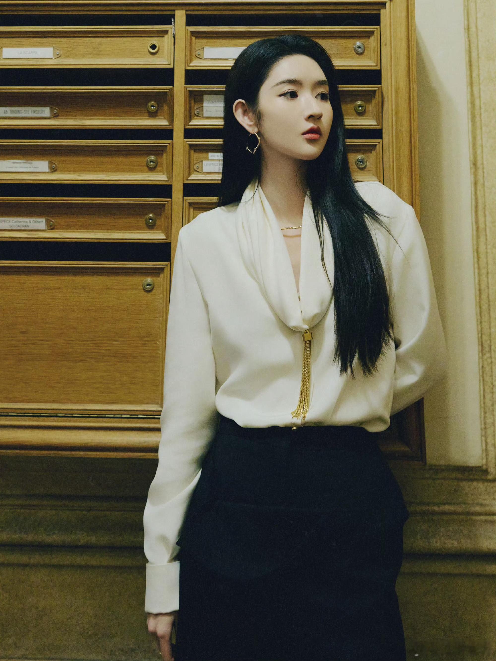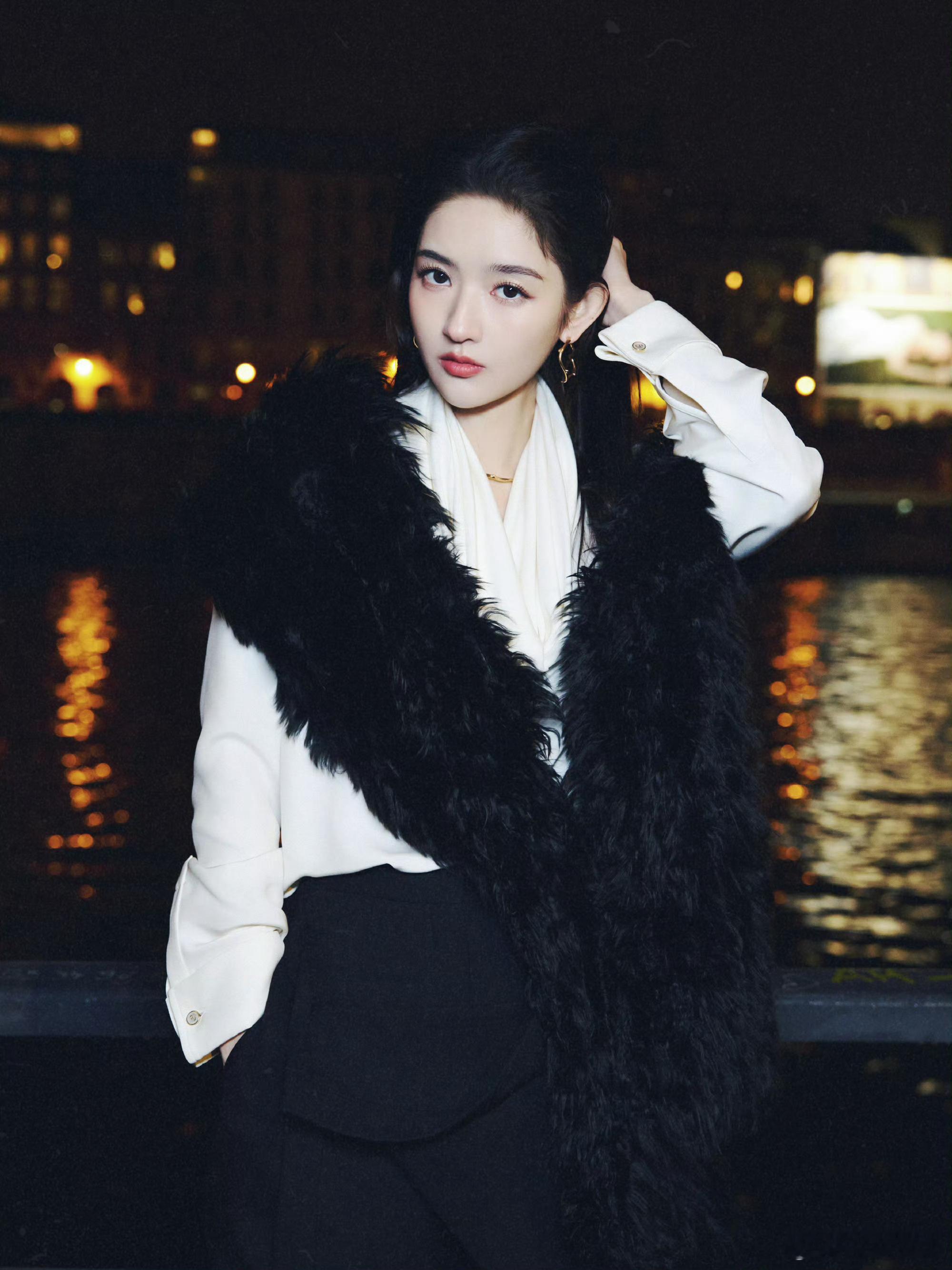 巴黎街头的暗夜氛围感被王玉雯拿捏住了!黑白极简穿搭适配度满分,今日份美到犯规!王