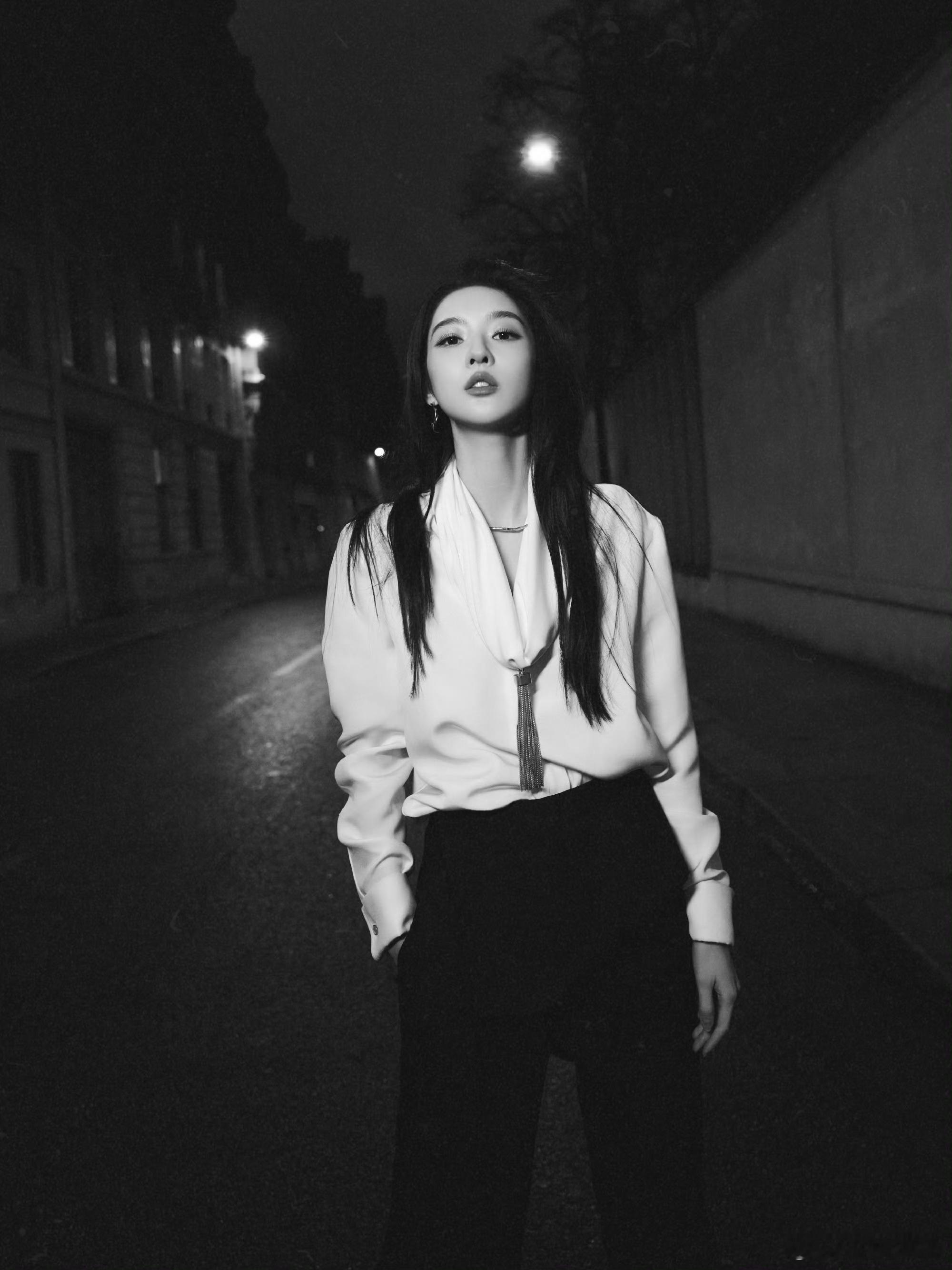巴黎街头的暗夜氛围感被王玉雯拿捏住了!黑白极简穿搭适配度满分,今日份美到犯规!王玉雯