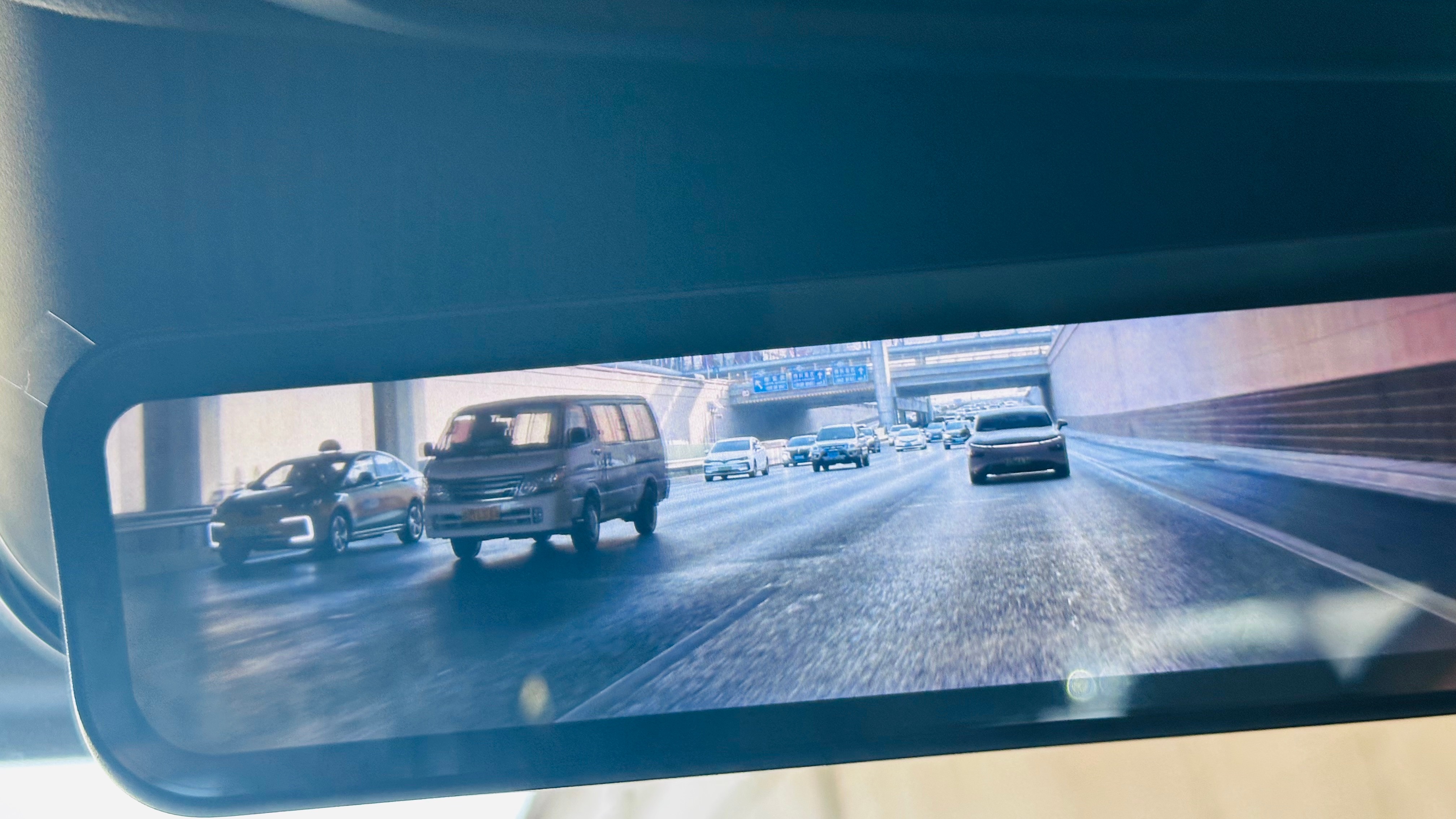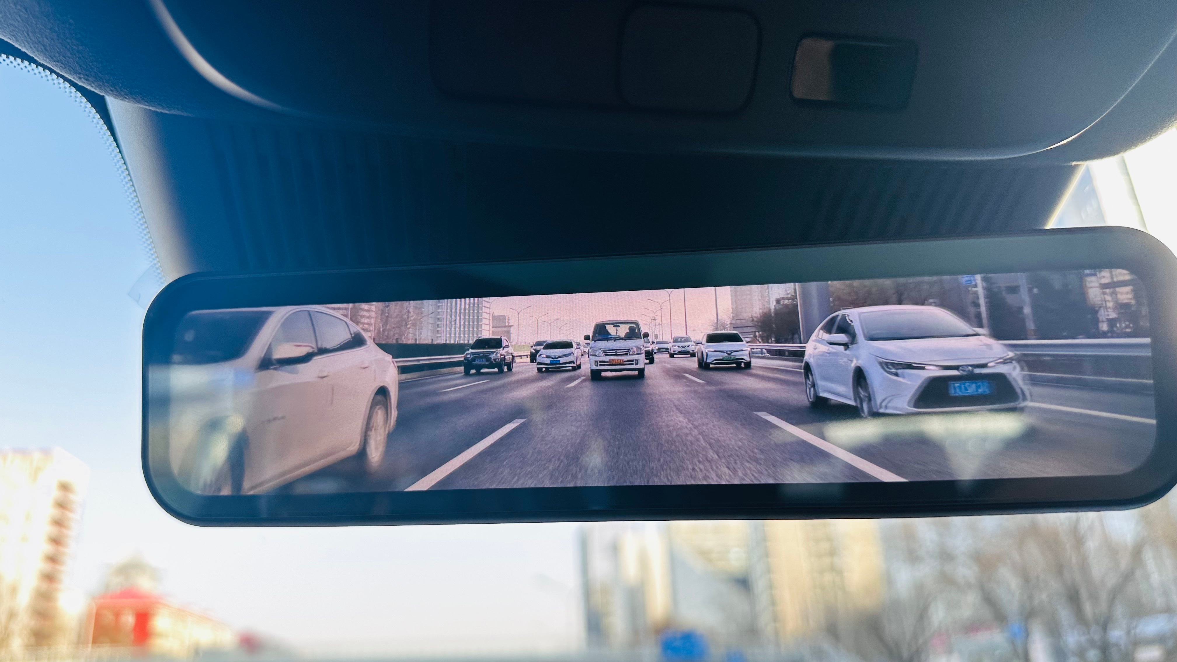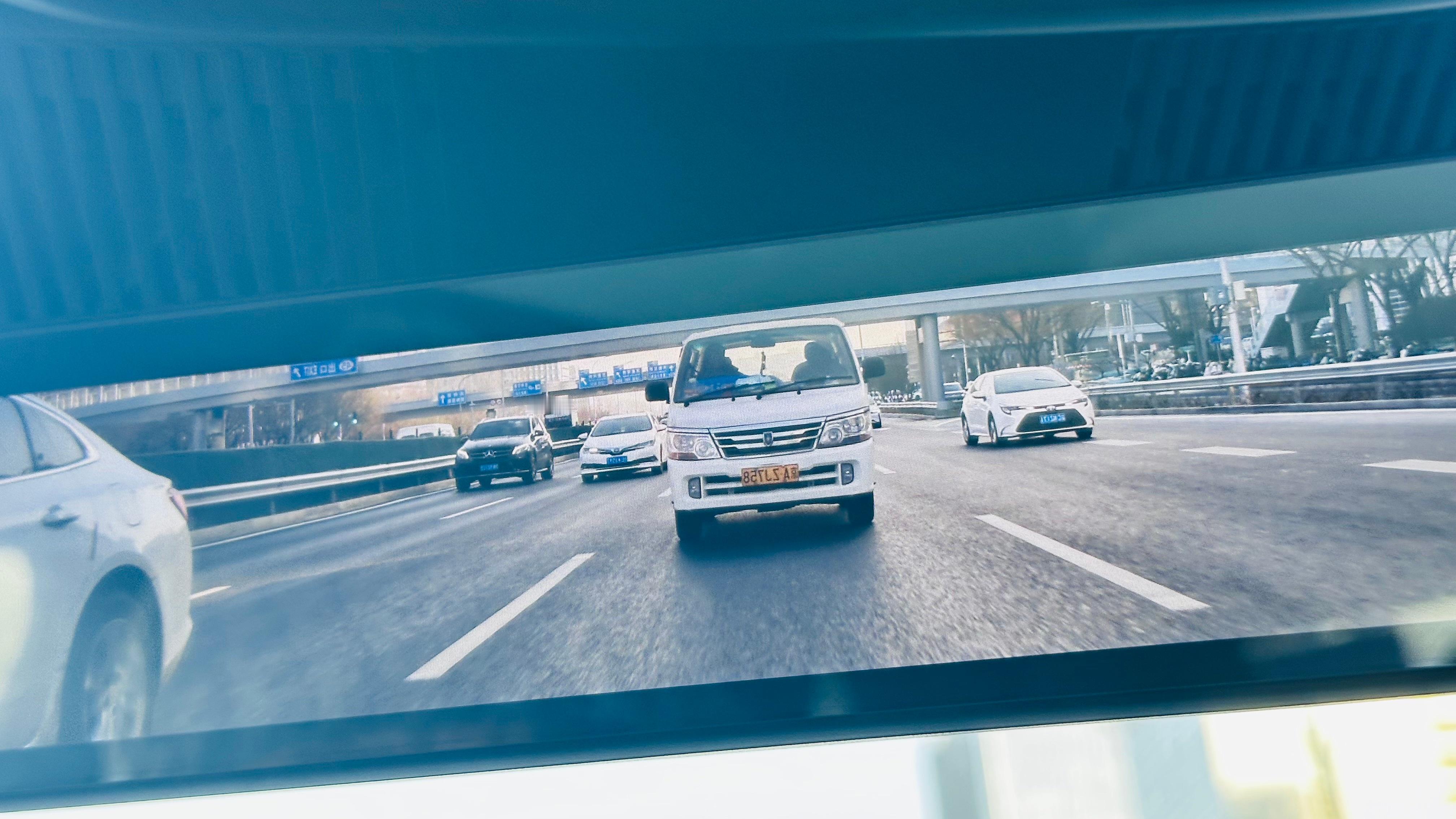 昨天,付老师跟我发现了一个流媒体后视镜的新用法。现在很多车流媒体后视镜,是有滤镜的,比如G9这个。看上去像是加了一定量的灰度镜在里面。拍车就很好看。以后要是拍动态,我觉得都可以不用架摄像机了,直接用流媒体后视镜拍就可以了呗。别不正经说车