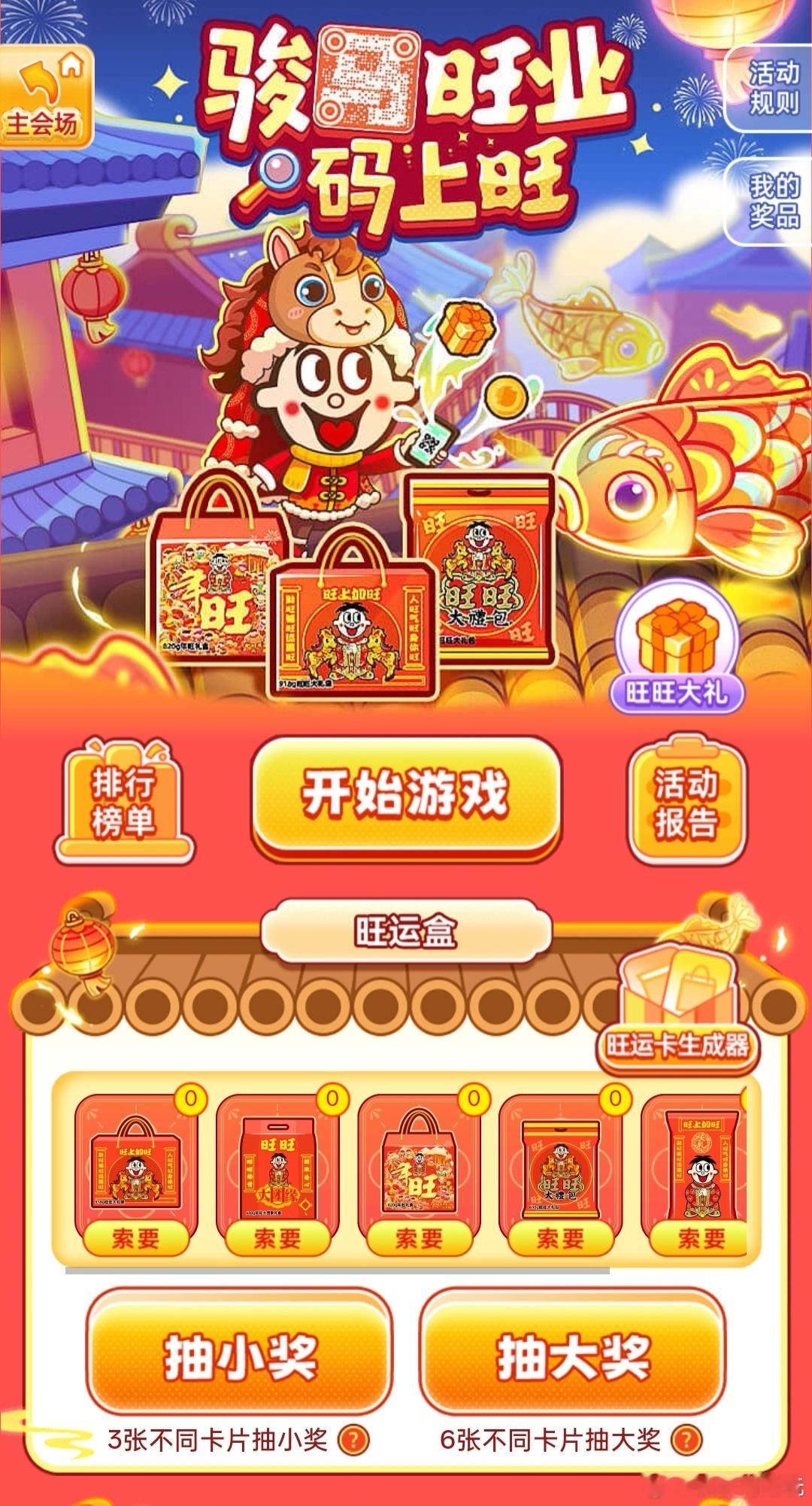 从小到大,旺旺就是刻在骨子里的年味!新年旺自己的方式过年走亲访友,手里总少不了拎一袋旺旺大礼包,光是拎着那抹喜庆的红,年味就扑面而来了。今年他们家直接整了联名+互动小游戏的新花样,随手参加小游戏就能抽奖,把过年的仪式感和趣味感直接拉满。老味道遇上新玩法,这才是新年旺自己的正确打开方式。嚼着熟悉的旺旺零食,再抽个新年小惊喜,新的一年妥妥旺上加旺,大家快去试一试吧