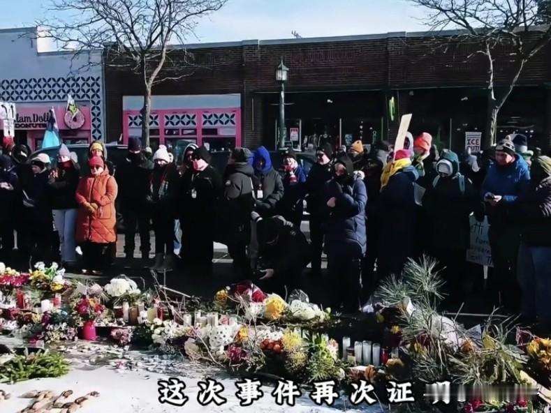 北美懦夫四件套,举牌、送花、追思、点蜡烛。大洋彼岸的人面对血色悲剧,只会唱歌、跳舞、开追悼会的行为,简直让人目瞪口呆。一天天的喊着“自由”的口号,真遇到点事了,只会搞自我感动的“四件套”。 ICE执法完全称得上一场微型战争,清空弹夹式的完全武力压制,让他们多年来的民主自由成了一个笑话,更别谈什么社会秩序了。