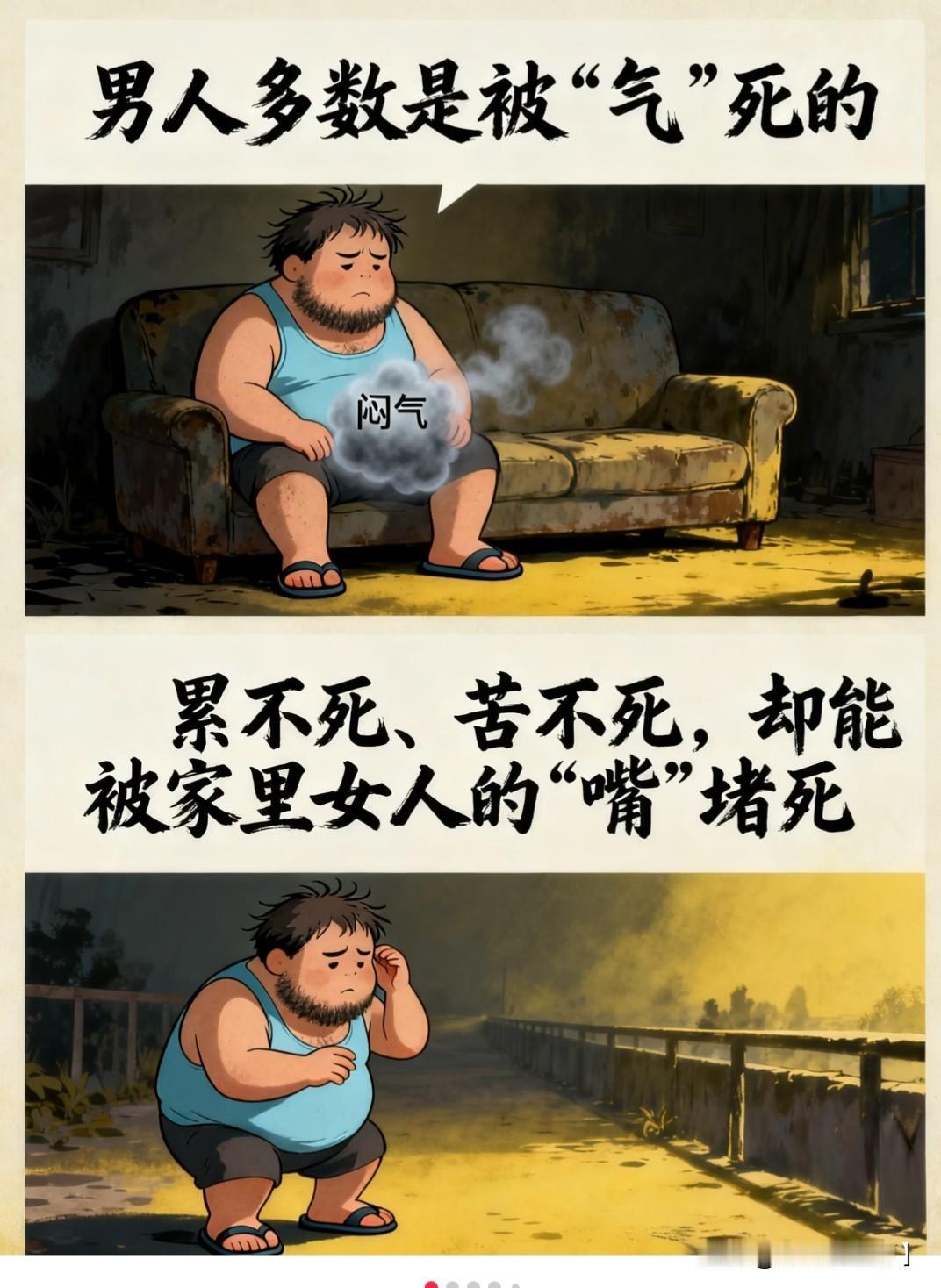社会价值的崩塌:无权、无势、无钱,这是许多男性最深层的焦虑,尤其是在承担家庭重担的中年阶段。 怕失业与贫穷: 作为家庭的顶梁柱,他们极度恐惧失去经济来源。一旦失业,房贷、养娃、赡养老人的压力会瞬间放大,这种无力感是毁灭性的。 男人往往将自我价值与社会地位挂钩。他们害怕在竞争中落后,害怕被人看不起,更怕因为没钱而被伴侣嫌弃,或者被周围的人比下去。随着年龄增长,对身体失控的恐惧会逐渐显现,这不仅是健康问题,更关乎尊严。 怕生病与衰老, 尤其是过了40岁,高血压、高血脂等问题接踵而至。他们不怕死,但怕生病后成为家庭的负担,怕失去照顾家人的能力。 在感情中,男人害怕的往往不是爱,而是爱带来的副作用。许多男性潜意识里有巨婴心态,他们享受亲密关系的温暖,但极度恐惧婚姻带来的责任。一句我们的关系前景如何,往往能让他们落荒而逃。 无论是被伴侣抛弃,还是发现伴侣的背叛,都会重创他们的自尊心。此外,他们也害怕自己深爱的人遭遇不幸。 男人最怕的,其实是无能为力。无论是赚不到钱、身体不行了,还是解决不了感情矛盾,核心都是害怕失去强者和保护者的光环。理解这一点,或许能让我们在面对他们时,多一份体谅。
