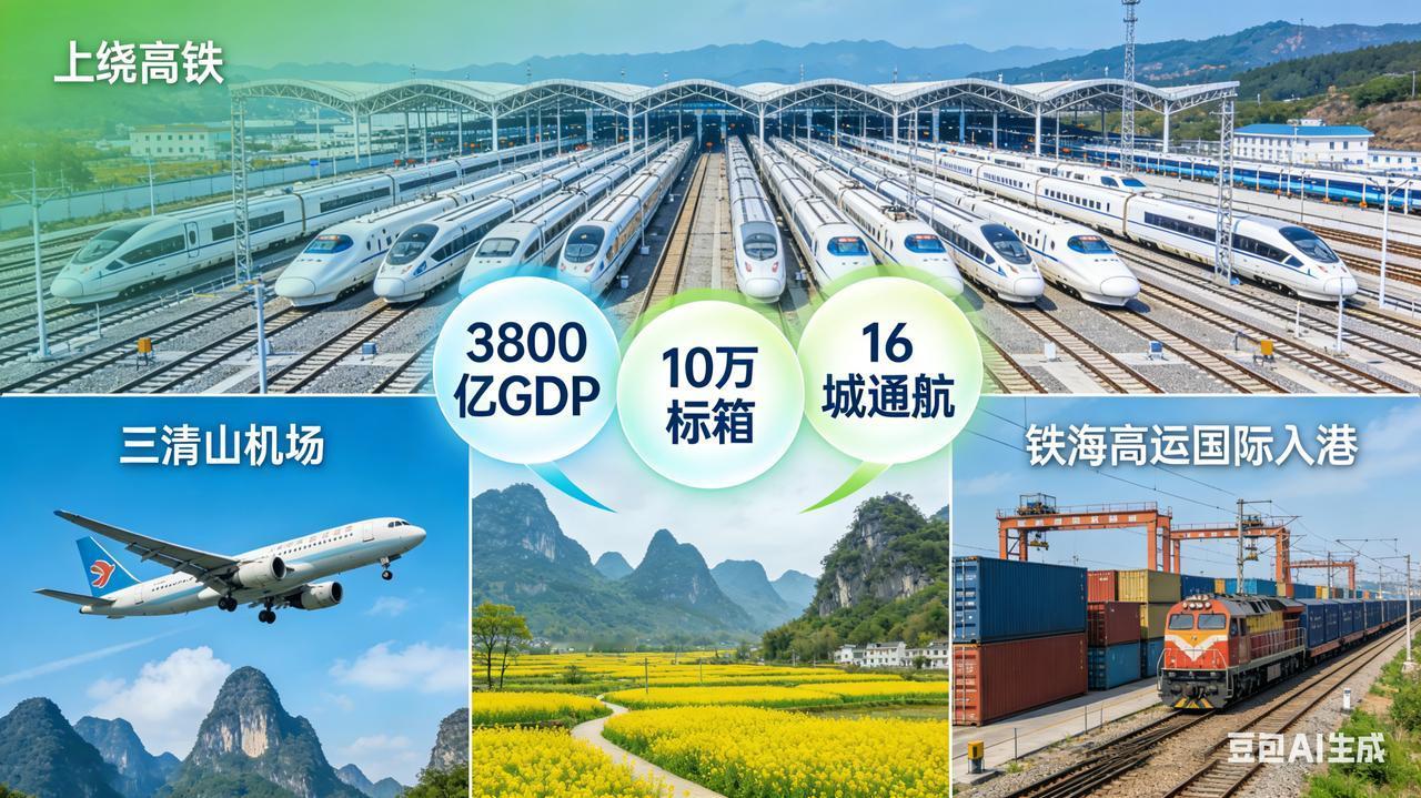 上饶热点新闻!!!快报! 上饶2025GDP突破3800亿!全国百强+四省通衢,交通枢纽改写发展格局 ——航空+高铁+水运三位一体,这座三线城市凭什么逆袭? 📌 三个核心要点 1. 经济能级跃升:2025年GDP预计达3800亿元,较2020年增加1109.7亿元,首次跻身全国百强城市(第99位),同时入选先进制造业百强市,成为江西对接长三角的“桥头堡”。 2. 交通立体成网:航空(三清山机场11条航线通达16城)、陆路(沪昆+京福高铁十字交汇,“三纵三横”高速贯通)、水路(信江接鄱阳湖连长江,铁海联运直达宁波舟山港)三位一体,构建四省通衢枢纽。 3. 红利全面释放:交通升级带动产业转移(长三角投资加码)、文旅爆发(长三角游客占比超40%)、民生改善(农村公路全覆盖+跨境物流提速),形成“交通+经济+文旅”联动发展格局。 💥 两个数据亮点 1. 2025年铁海联运发运量突破10万标箱,提前50天完成全年任务,高峰日发运3列,出口通关效率提升30% ; 2. 前三季度GDP达2722.6亿元,同比增长5.8%,高于全省平均水平0.4个百分点,增速领跑赣东北 。 🛣️ 交通枢纽带来的十大巨变 1. 长三角通勤圈成型:高铁至杭州1.5小时、上海2.5小时,跨城上班/旅游常态化; 2. 跨境物流提质:“无水港”+“飞地港”落地,本地光伏组件、卫浴产品直达全球; 3. 文旅爆发式增长:高铁站至望仙谷1小时、灵山40分钟,“快进慢游”成主流; 4. 产业转移承接力升级:物流成本降低+通关效率提升,吸引长三角制造企业落户; 5. 航空通达性扩容:新增珠海、呼和浩特航线,天津航线加密至每日一班,覆盖华北、华南、西南核心城市; 6. 农产品出山提速:农村公路串联全域,茶叶、特色农产品借物流网络热销全国; 7. 区域辐射力增强:赣浙闽皖交界物资集散中心地位巩固,成为四省商贸枢纽; 8. 就业机会扩容:物流、文旅、制造等产业带动就业,返乡创业人数年增20%+; 9. 城市配套升级:公路驿站兼具服务与展销功能,高铁站枢纽商圈成型; 10. 开放能级提升:对接长江经济带与长三角一体化,成为中西部对外开放门户。 (文中所引用的数据来源于上饶市政府官网及《上饶日报》及,全景配图来源于网络,本文由周金祥供稿)